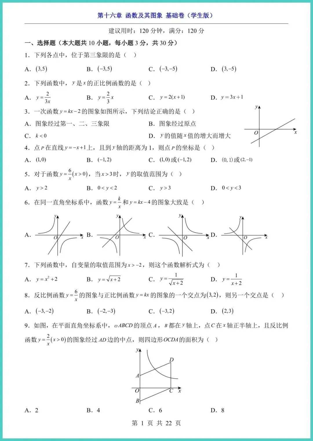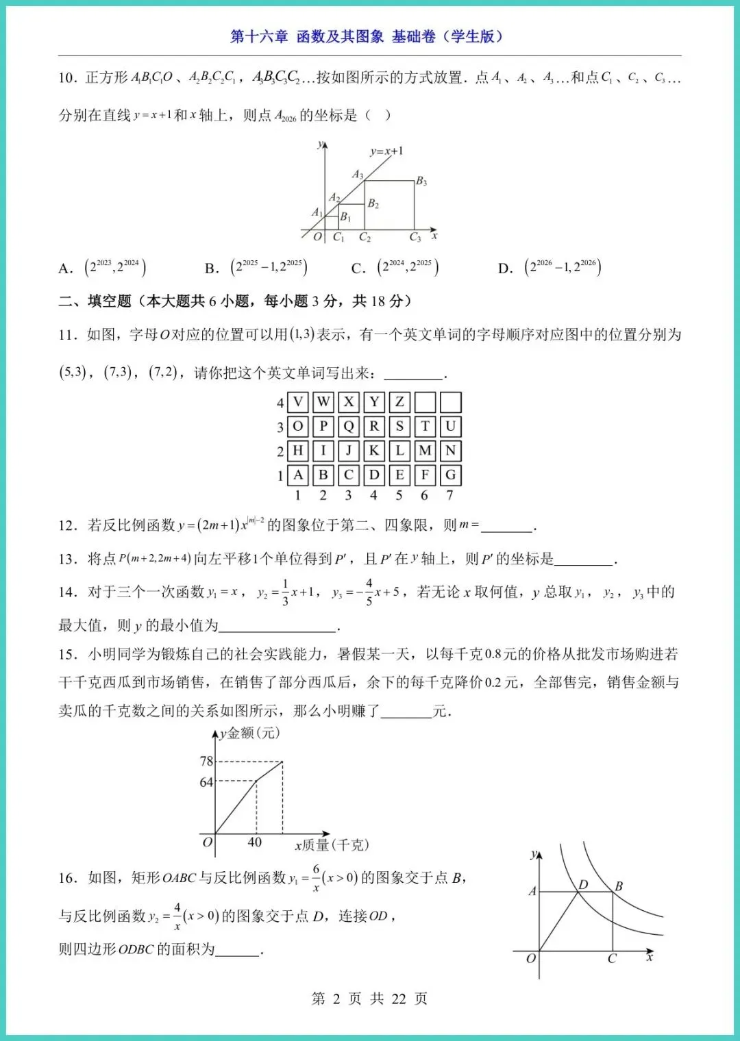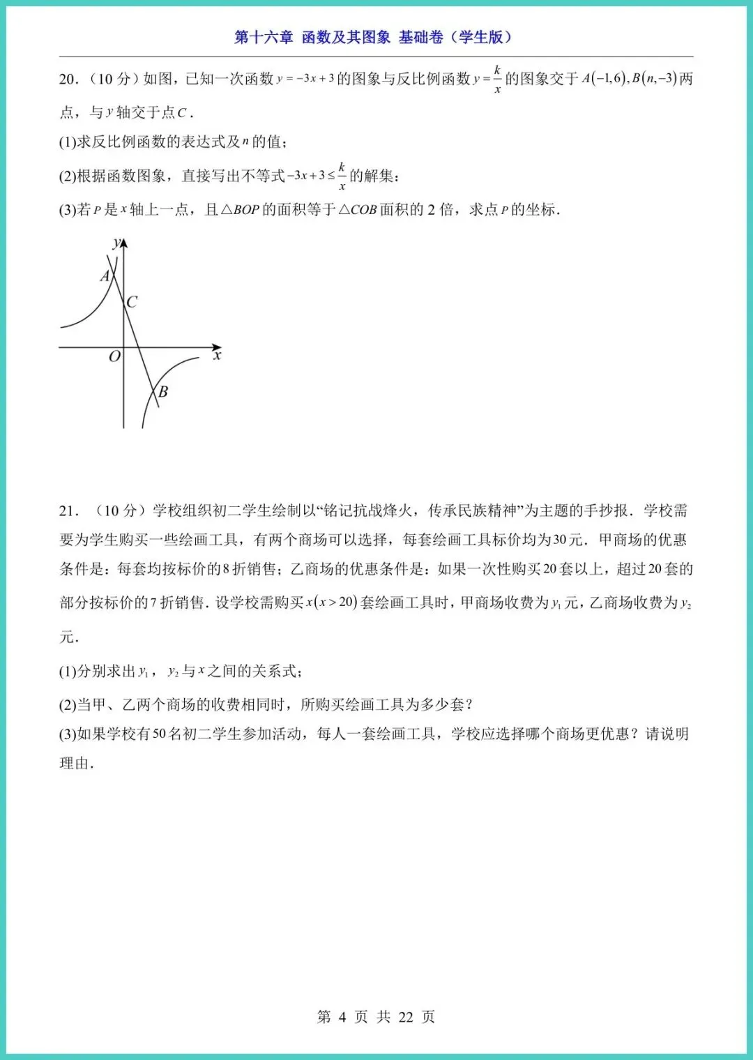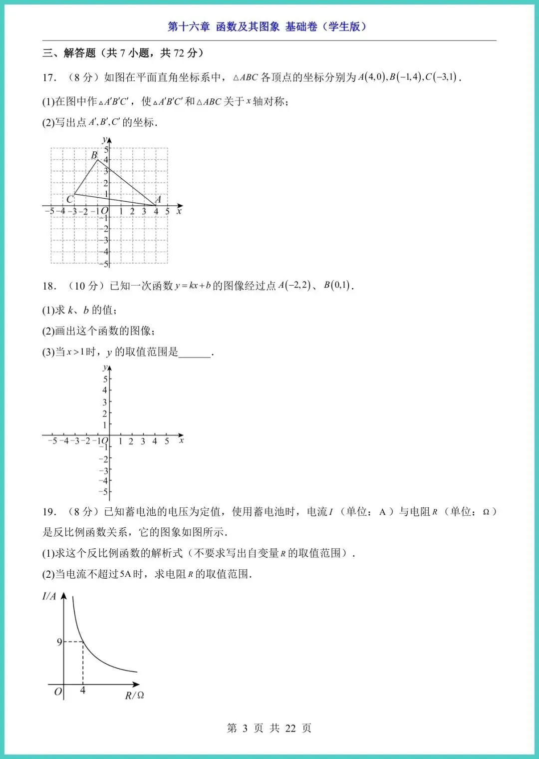 23春华东师大版八年级下册数学第16章《函数及其图象》基础卷,新鲜出炉22页!紧扣课本,逐点拆解坐标、解析式、图象变换,例题变式易错题三阶递进,娃一看就懂,一练就会。每天15分钟,画图、列表、求值一气呵成,期中、月考稳稳提分!想让孩子函数不丢分?快把电子版存手机,今晚就打印,练到笔尖生花!