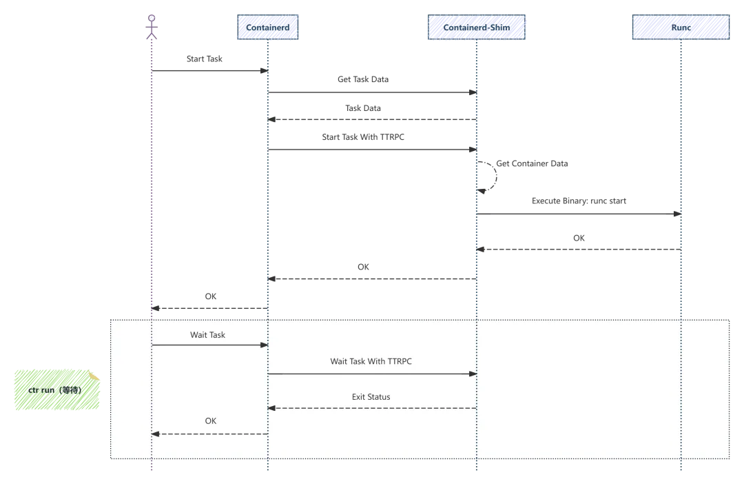 Task 启动阶段的核心目标很明确:在已创建的 Task 上触发实际进程运行,并把运行结果回传给上层调用方。源码主线可以概括为“定位目标进程 -> 下发启动指令 -> runtime 执行 -> 回填状态”。