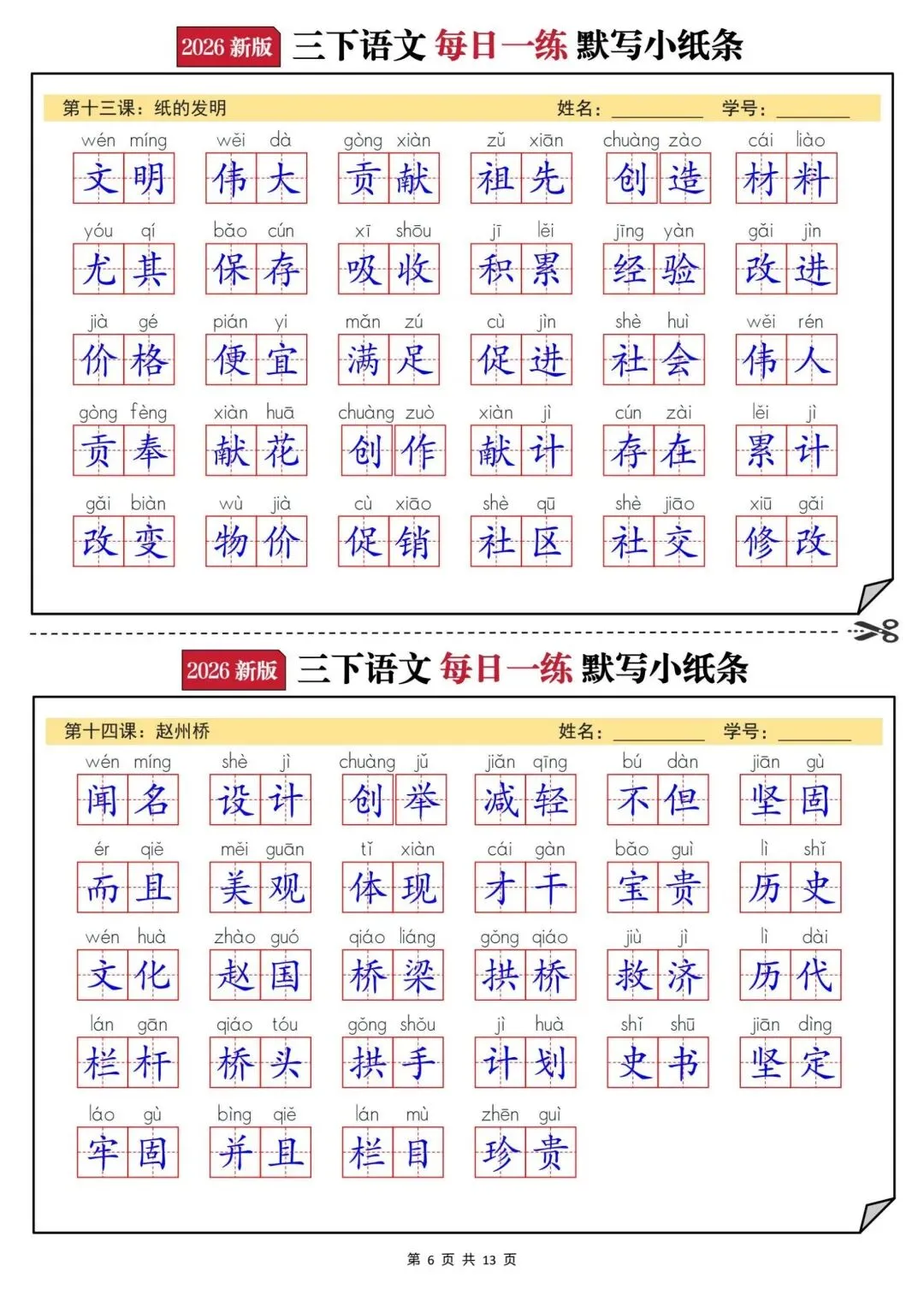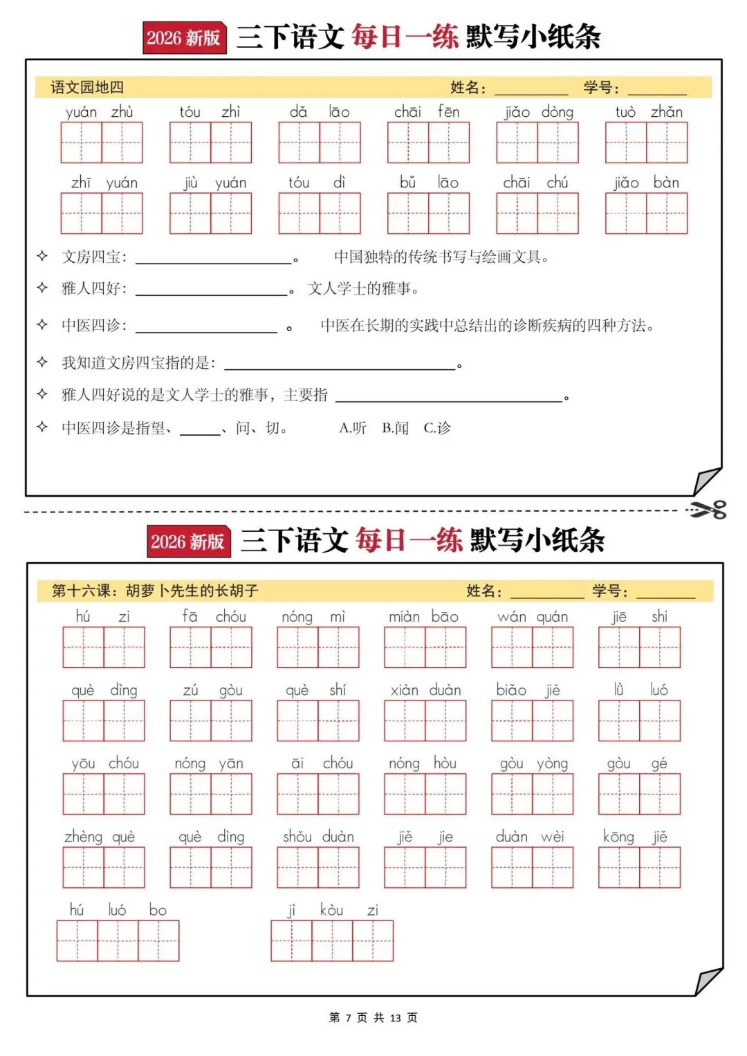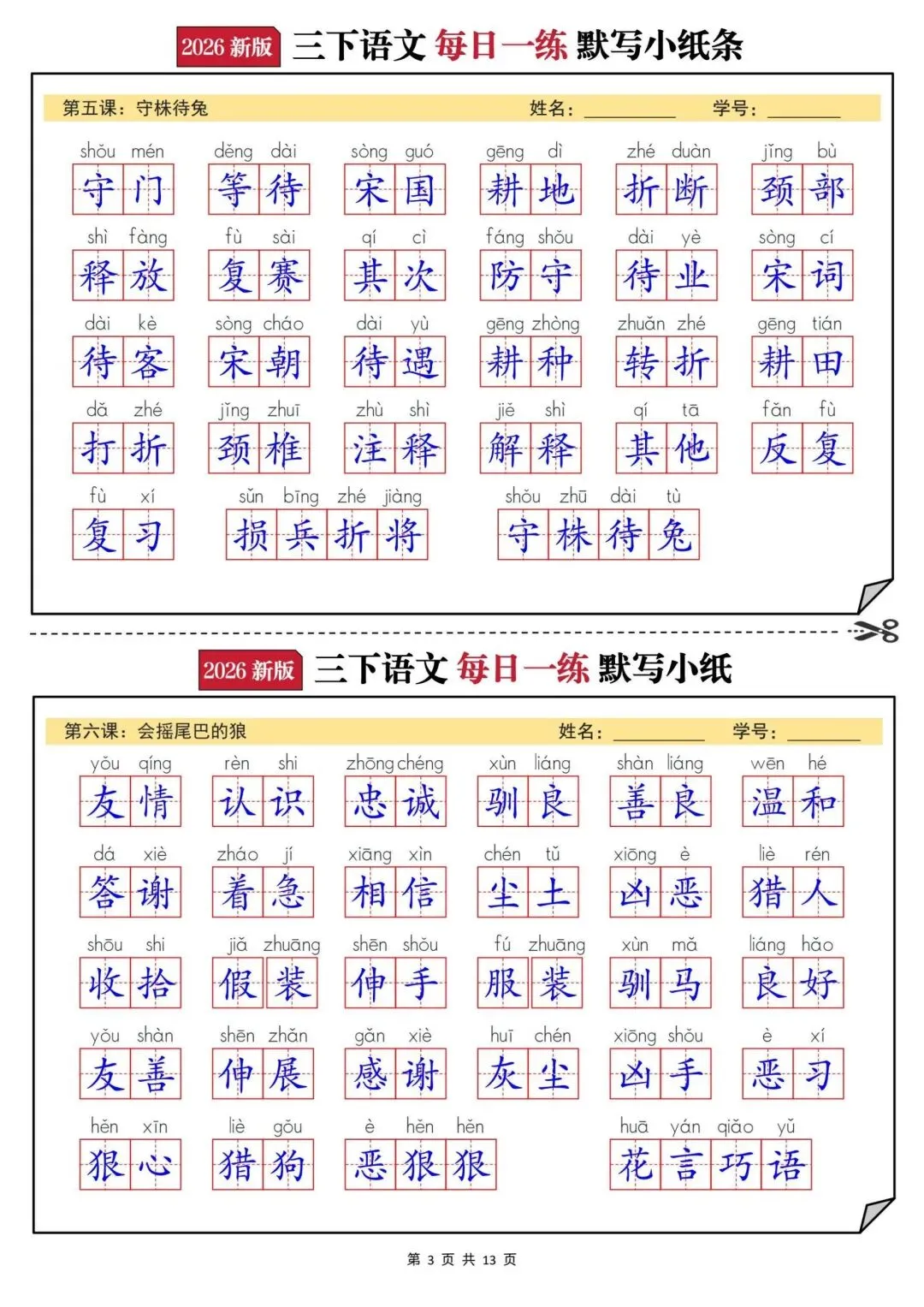 【三年级下册语文每日一练默写小纸条】PDF电子版
