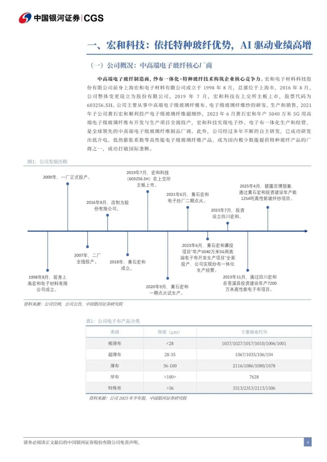 宏和科技:中高端电子玻纤核心厂商,高性能电子布驱动业绩高增。公司主要从事中高端电子级玻璃纤维布、电子级玻璃纤维纱的研发、生产和销售,是全球领先的中高端电子级玻璃纤维制品厂商。