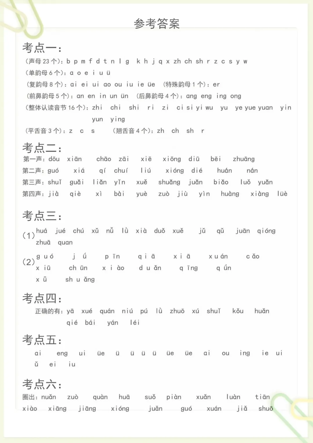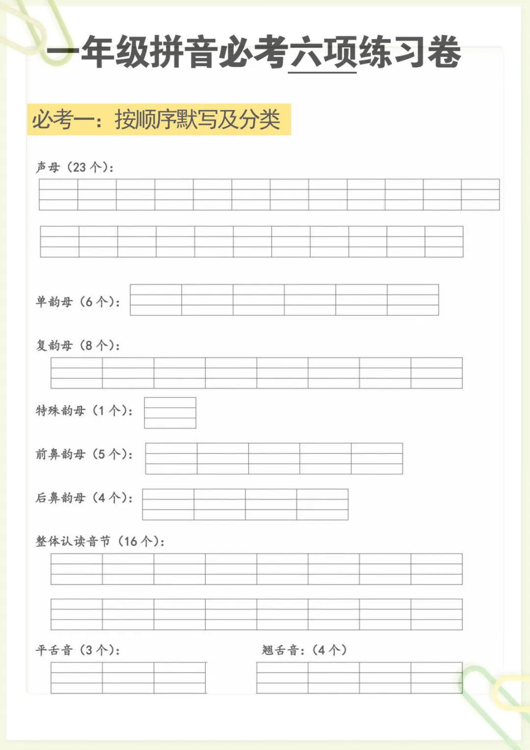 拼音必考六项,电子版可打印