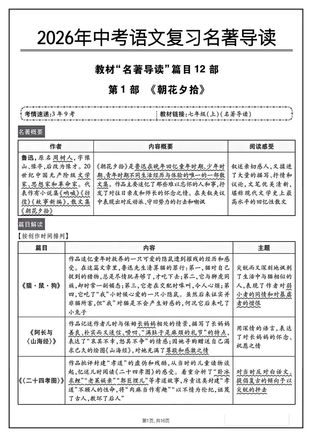 26中考语文复习名著导读12部(电子版可打印)