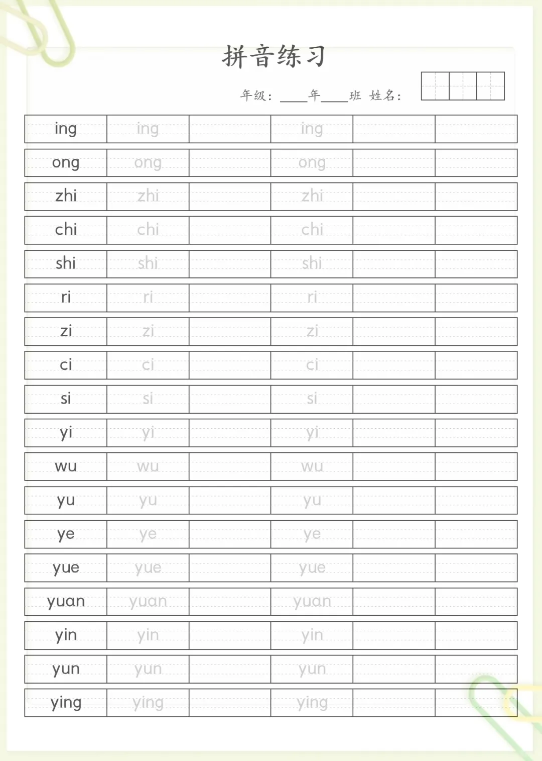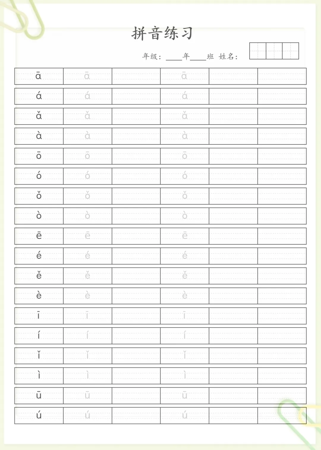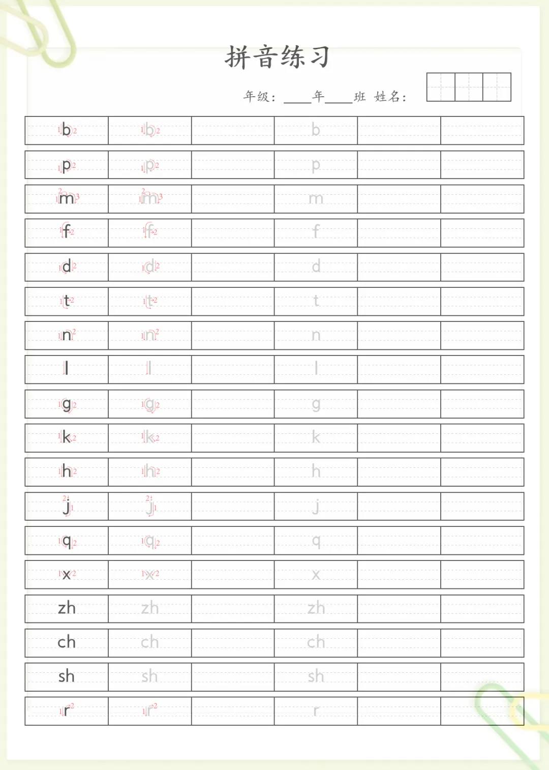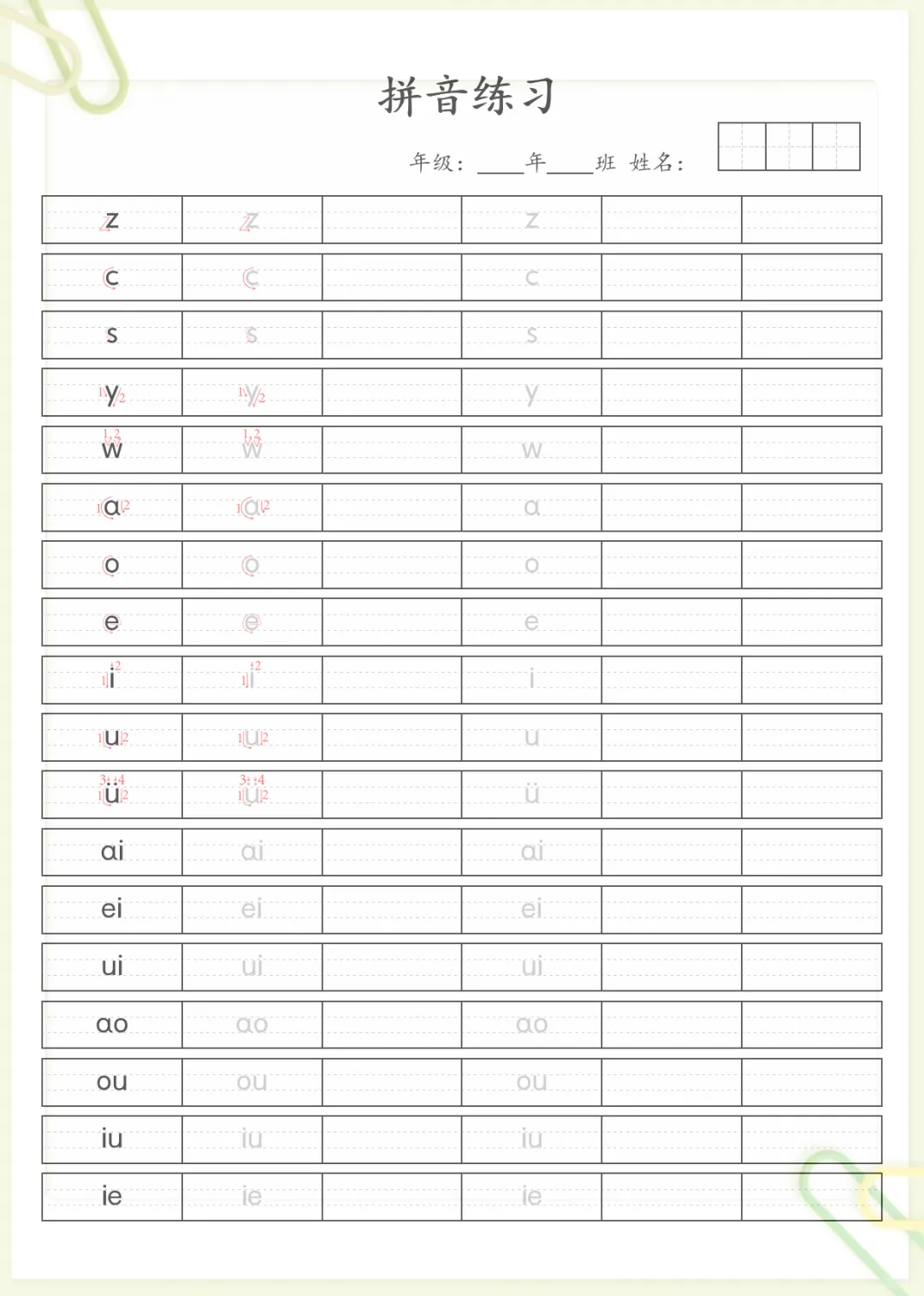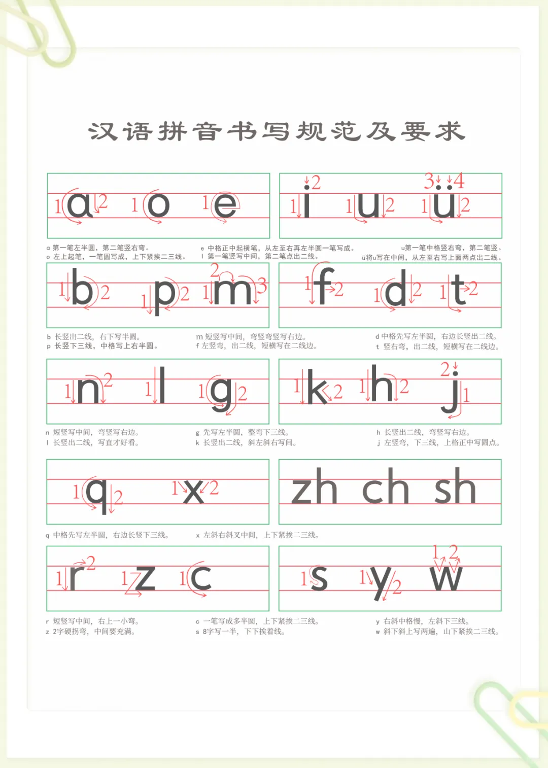 汉语拼音笔顺规范书写 无水印,电子版可打印