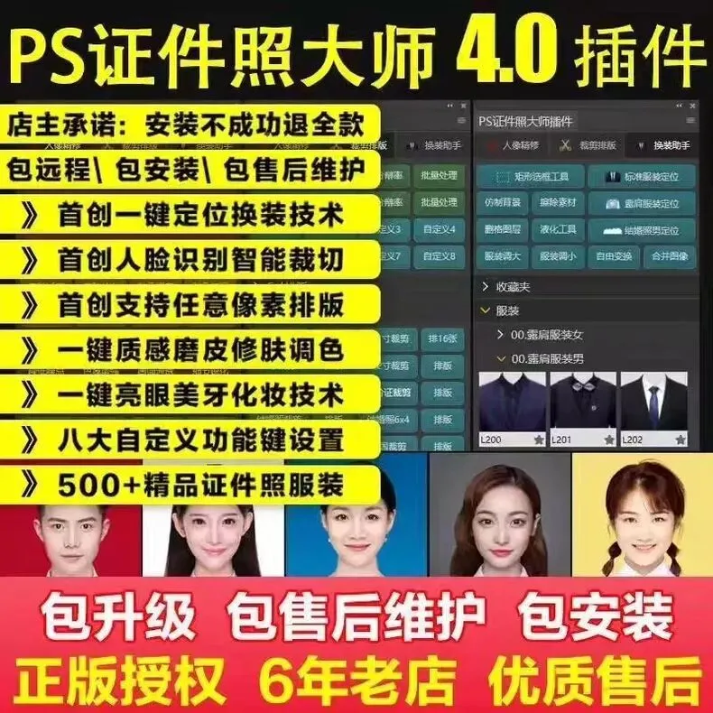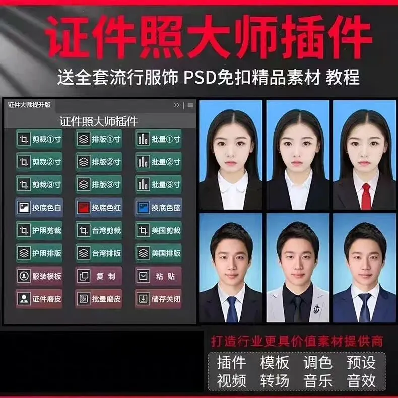 【自用分享】【免费分享】PS证件照插件大师4.0一键磨皮抠图换正装调色批量排版软件