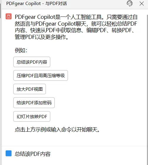 还有一个有意思的功能,它里面还带了一个叫 Copilot 的功能,说白了就是一个AI助手。你可以直接对着PDF去问问题,或者让它帮你总结内容、提取重点这种。这个功能很有作用,以前我都是将文档喂给AI,然后问AI问题进行总结。现在这个功能直接自带了,真不错。