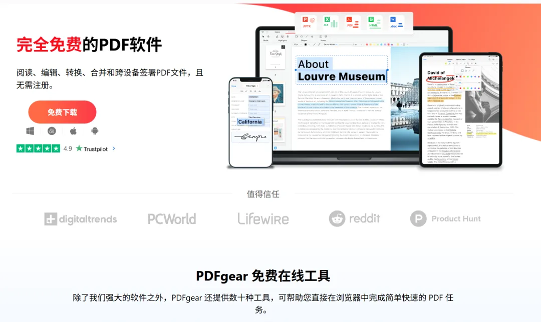官网下载地址:https://www.pdfgear.com/zh/ 重点是还有中文版,对中文用户非常友好!