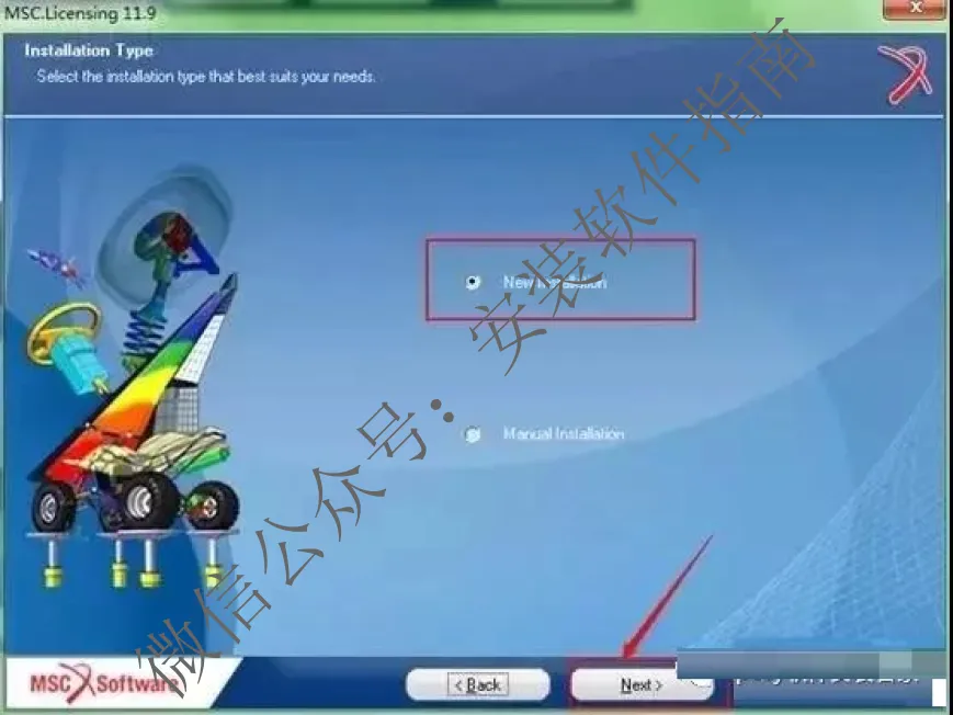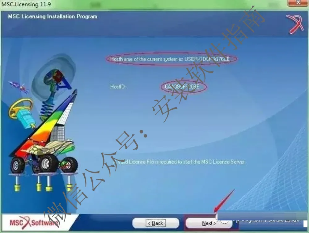 22.安装完成后会弹出以下界面,点“Browse”选择前面生成的许可文件license.dat(许可安装中新生成的),路径C:MSC.SoftwareMSC.Licensing11.9license.dat,然后点Next。