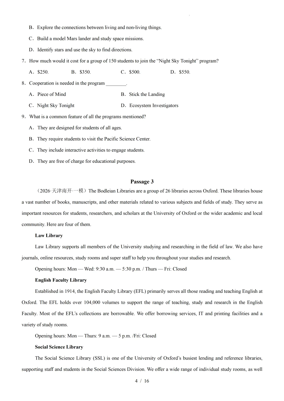 【可下载】2026年高考英语一模分类汇编06+阅读理解应用文(天津专用)(附解析和答案) 点击上方“蓝字”免费关注! 本套试卷+答案解析下载入口 关注“卿卿侃古今”公众号 点击左下角阅读原文可下载 相关链接: 2007-2025年天津市高考英语真题汇总(持续更新中~) 2011-2023年天津高考英语听力真题在线测试 【高考英语听力在线测试】高考听力机考模拟试题大全(持续更新中) 【可下载】2025-2026年高中英语试题汇总(附解析)【持续更新中】 【汇总】高中英语月考和期中期末试题(持续更新中~) 【题库】高一英语试题汇编(持续更新中~) 【题库】高二英语试题汇编(持续更新中~) 【题库】高三英语试题汇编(持续更新中~) 【可下载】高三英语上学期期末试题16套(附解析) 【可下载】高二英语上学期期末试题10套(附解析) 【可下载】高一英语上学期期末试题汇9套(附解析) 【可下载】2025-2026学年度高一高二高三开学考试模拟试卷(天津专用)(附解析) 新外研版高中英语高清电子课本、课文原文和译文、单元同步复习资料和试题【持续更新中】 【目录1】高中英语阅读理解限时训练大全(持续更新中~) 【目录2】高中英语完形填空限时训练大全(持续更新中~) 【目录3】高中英语书面表达大全(持续更新中~) 【目录4】高中英语听力训练大全(持续更新中~) 【目录5】高中英语单选题大全(持续更新中~) 【目录6】高中英语语法题大全(持续更新中~) 【目录7】高中英语阅读表达题大全(持续更新中~) 【目录8】科普知识汇总 【目录9】中高考学法知识汇总 【目录10】高考英语真题+名校模拟真题+月考和期中期末试题(持续更新中~) 【目录11】暑期高考英语备考资料大全持续更新中~【汇总】中高考志愿填报资料大全 【汇总】高中英语月考和期中期末试题(持续更新中~) 【汇总】2025届高三英语一模试题(附解析) 【汇总】2024届高三英语一模二模三模试题(附解析) 【汇总】2024届高考英语押题卷(附解析) 【汇总】2025届高三英语周考综合练(附解析) 【题库】高三英语限时训练(持续更新中~) 【模拟】2025届高三英语听力机考模拟试题在线测试 【高考词汇】(新)外研版高中英语全七册词汇表(附音频) 【中考词汇】初中英语外研版必备单词表(完整版),可打印 建议收藏保存 点击阅读原文查更多