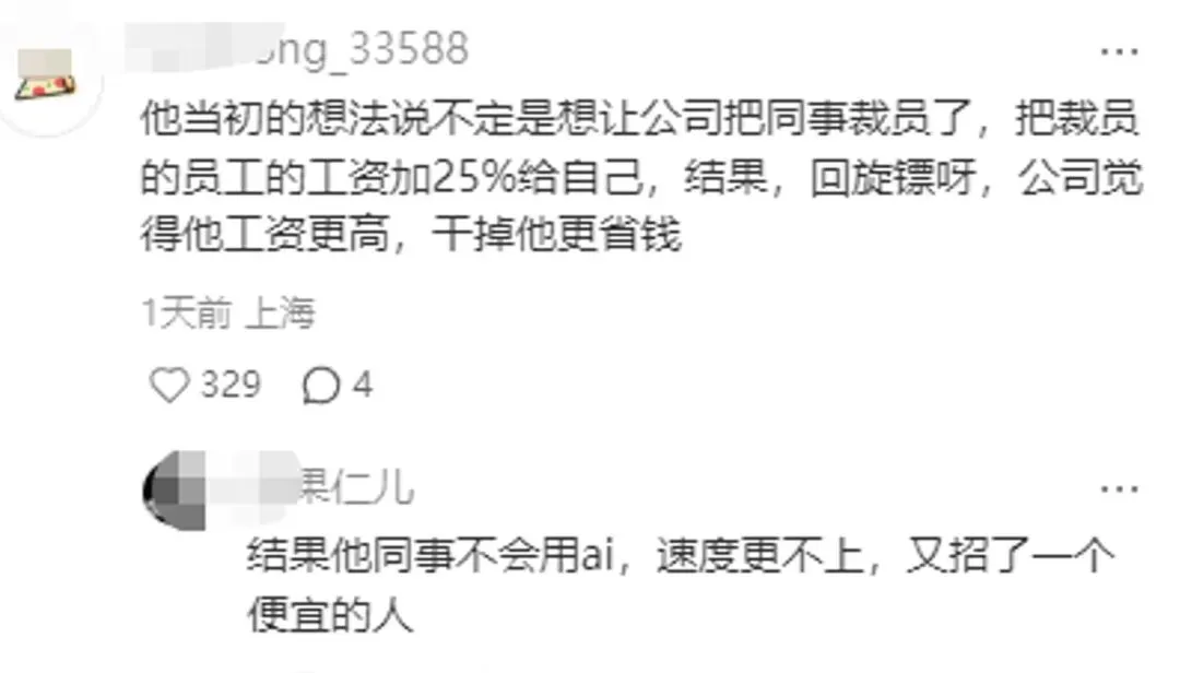 说到底是信息差。那个程序员脑子里想的是”我要证明价值”,leader听到的是”这个岗位效率上限比想象的高”,部门负责人听到的是”这个编制可以省下来”。