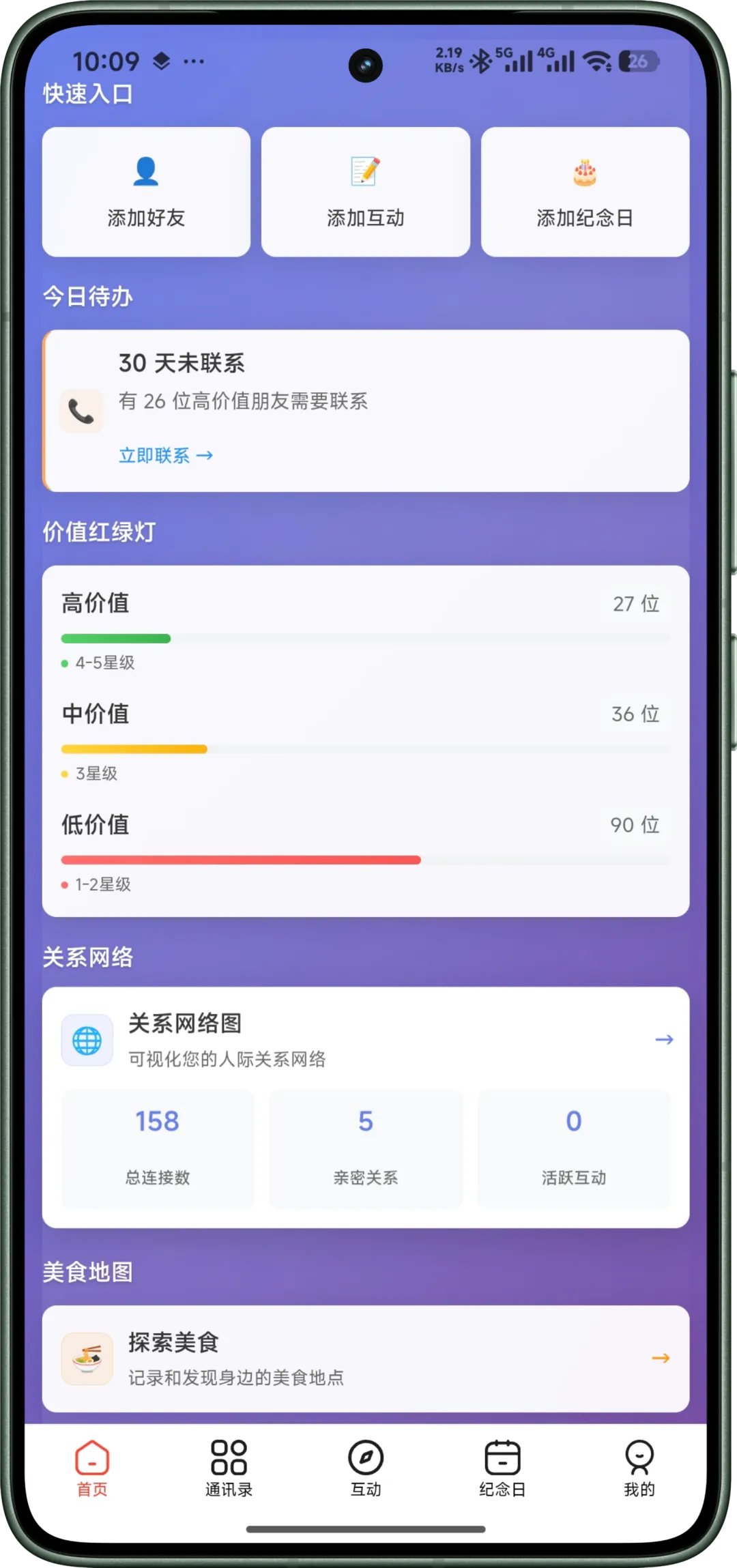 友集是一款帮助您管理和分析人际关系的移动应用,通过价值评分、互动记录、关系网络图等功能,帮助您建立和维护更有价值的人际关系。