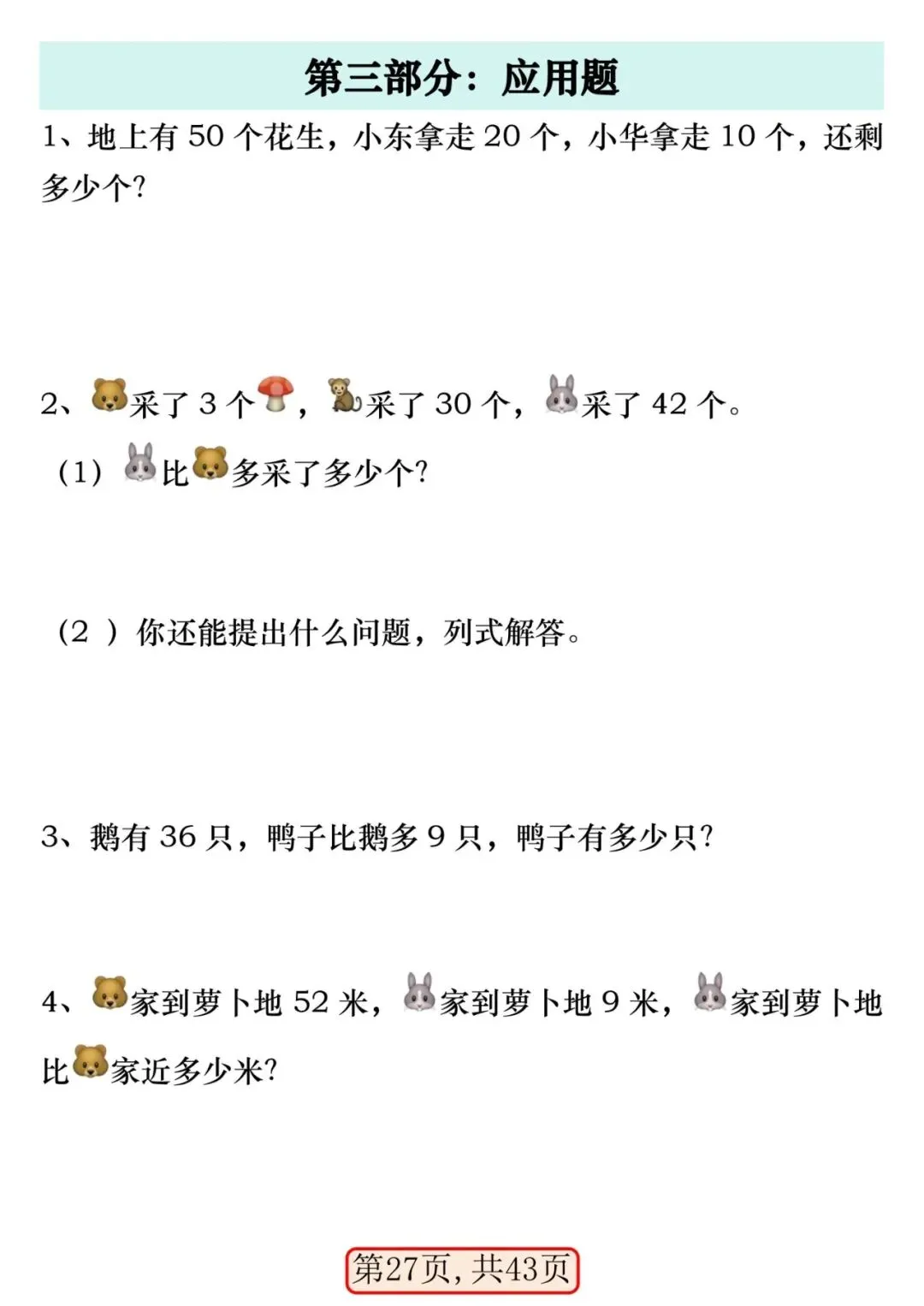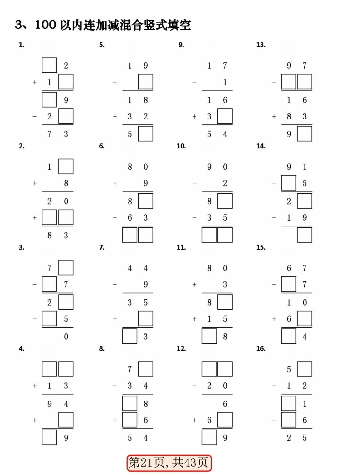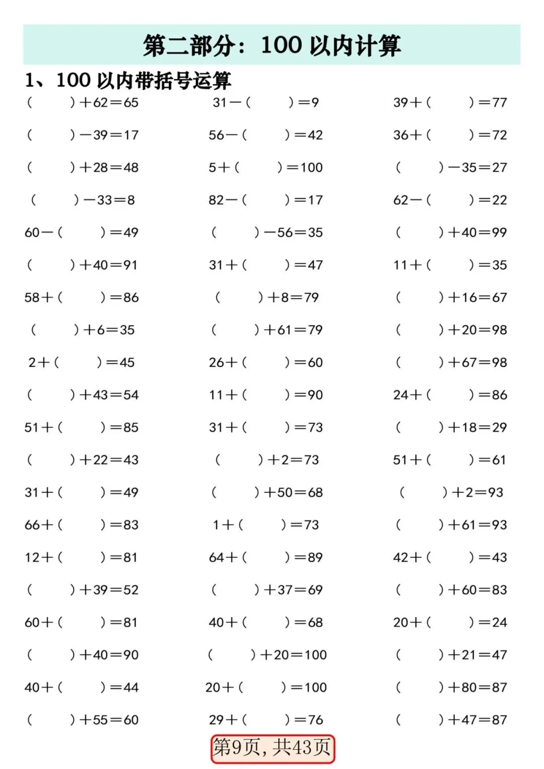 一年级数学下册 100 以内易错易混专项练习.PDF (43页)