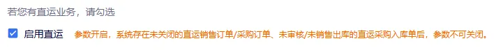 1、若要使用直运功能,需要先开启系统参数“启用直运”。
