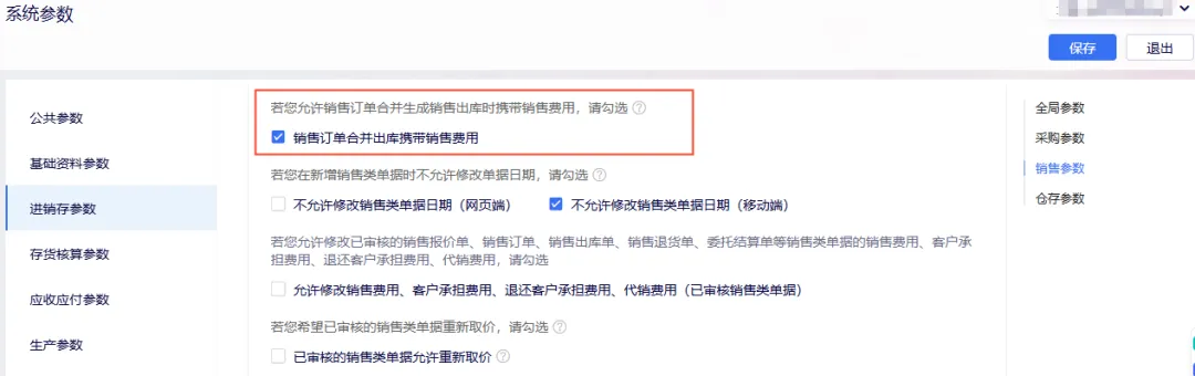 若是多对一下推,则根据系统参数“销售类单据合并下推携带销售费用”是否勾选来决定是否合并携带