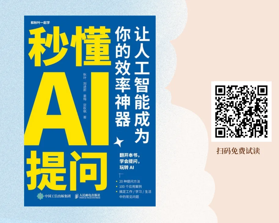 《秒懂AI提问:让人工智能成为你的效率神器》:20种提问方法+100个应用案例,教你精准向AI下达指令,让AI帮你查资料、做规划、解难题,成为你的专属智囊团,高效搞定各类琐事。