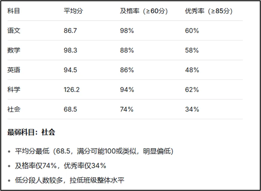 全班成绩出来,我盯着Excel捣鼓了1小时也没结果,直到我把数据喂给了DeepSeek,它直接告诉我:谁进步了、谁退步了、哪科最弱、该找谁谈话