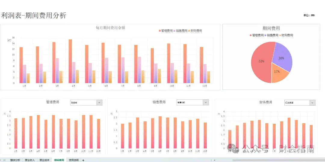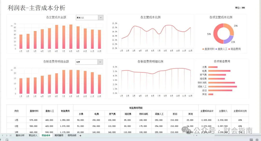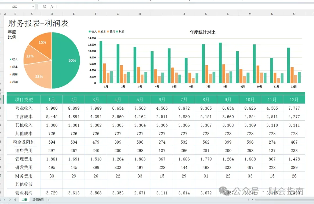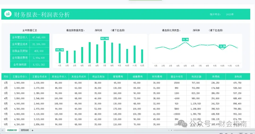财务人员每月都会做财务报表利润表分析,收入、成本、费用、毛利、净利计算分析,难为不少财务人员,做的Excel表格跟流水账一样,总被领导说,利润数据分析不直观,看不出来是啥!今天小南在此跟各位财务人员分享一下:全自动Excel利润明细表模板,表里已经设置好了函数公式,财务人员可编辑修改,套用后,收入成本费用自动核算,自动生成可视化利润表分析图形,使得利润数据分析更直观,具体内容见下文。