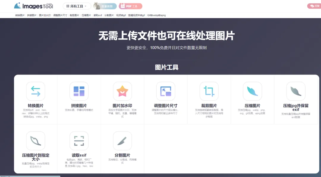 所有的在线工具都使用浏览器技术进行图片处理