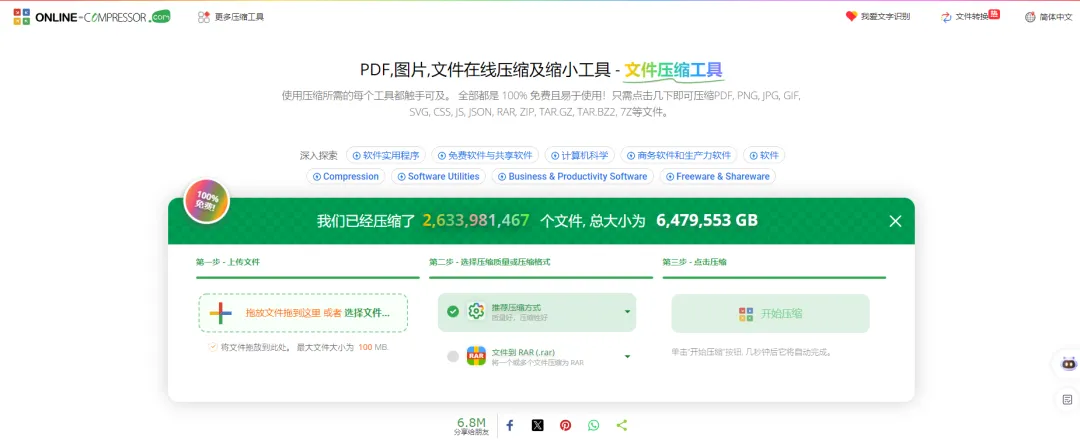 以上三个全能无损压缩网站、100%免费、无需注册即可使用、直接下载、