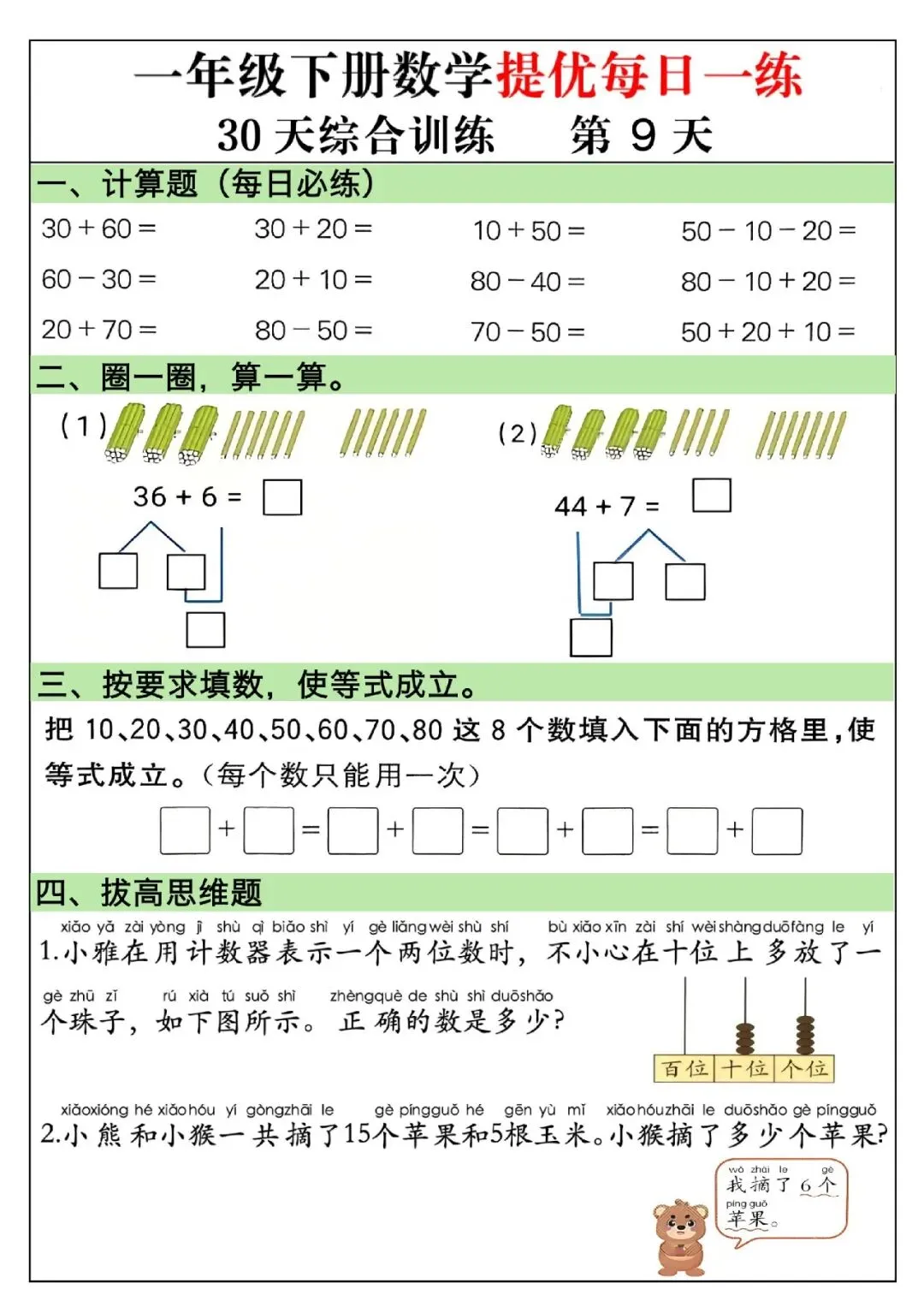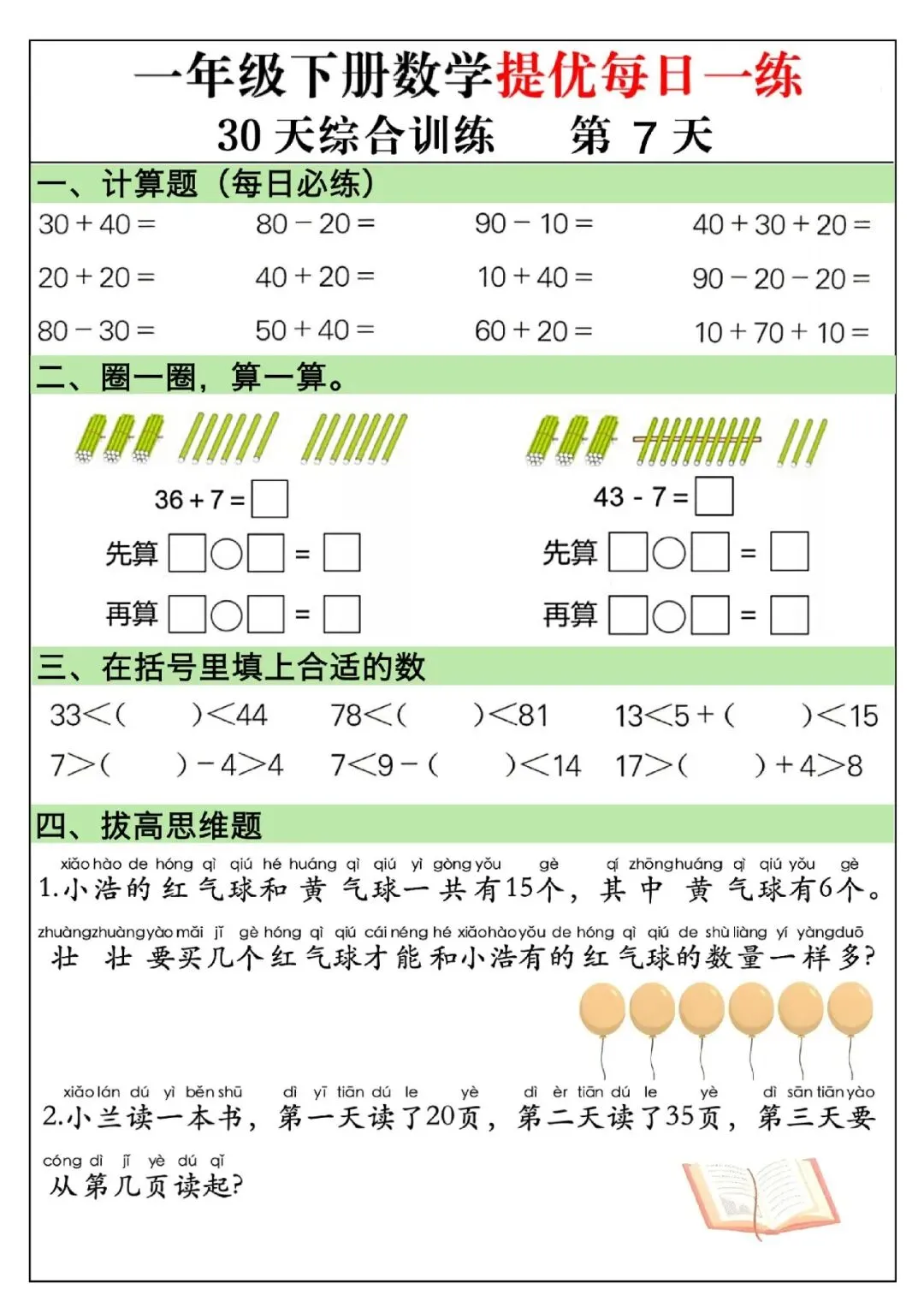 一年级下册数学提优每日一练.PDF (30页)