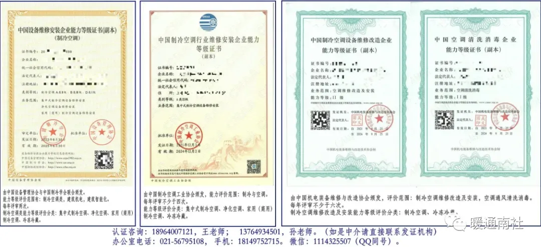 2.中国设备维修安装企业能力等级证书(制冷空调)