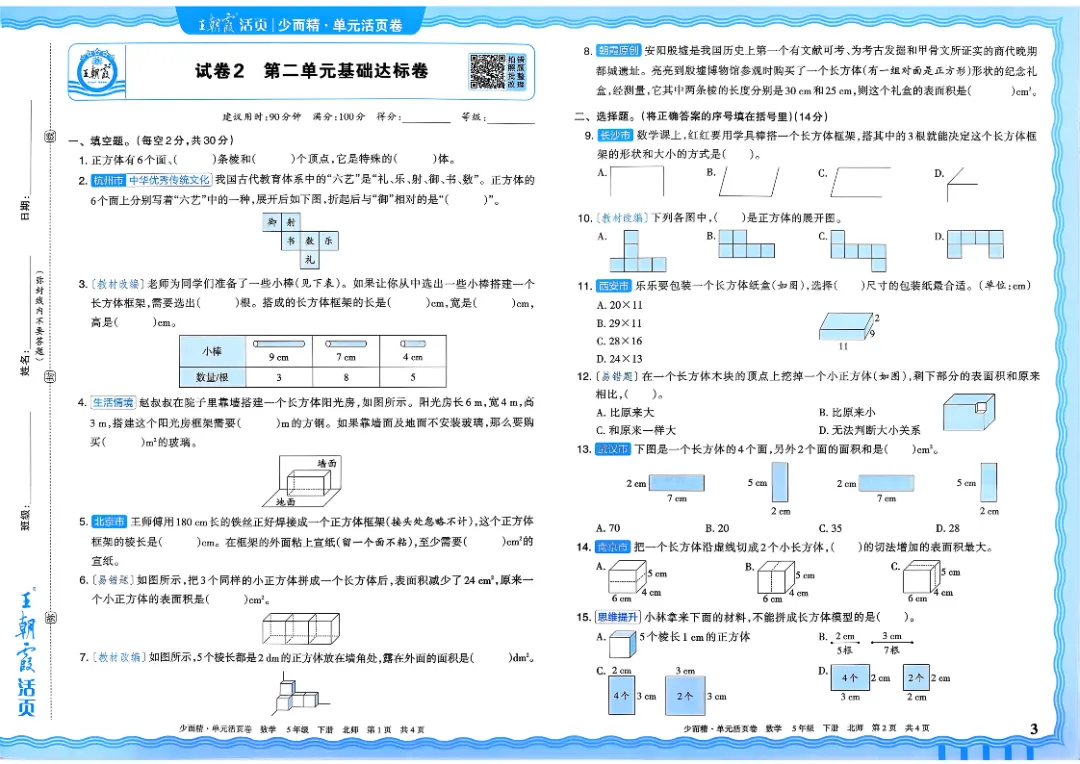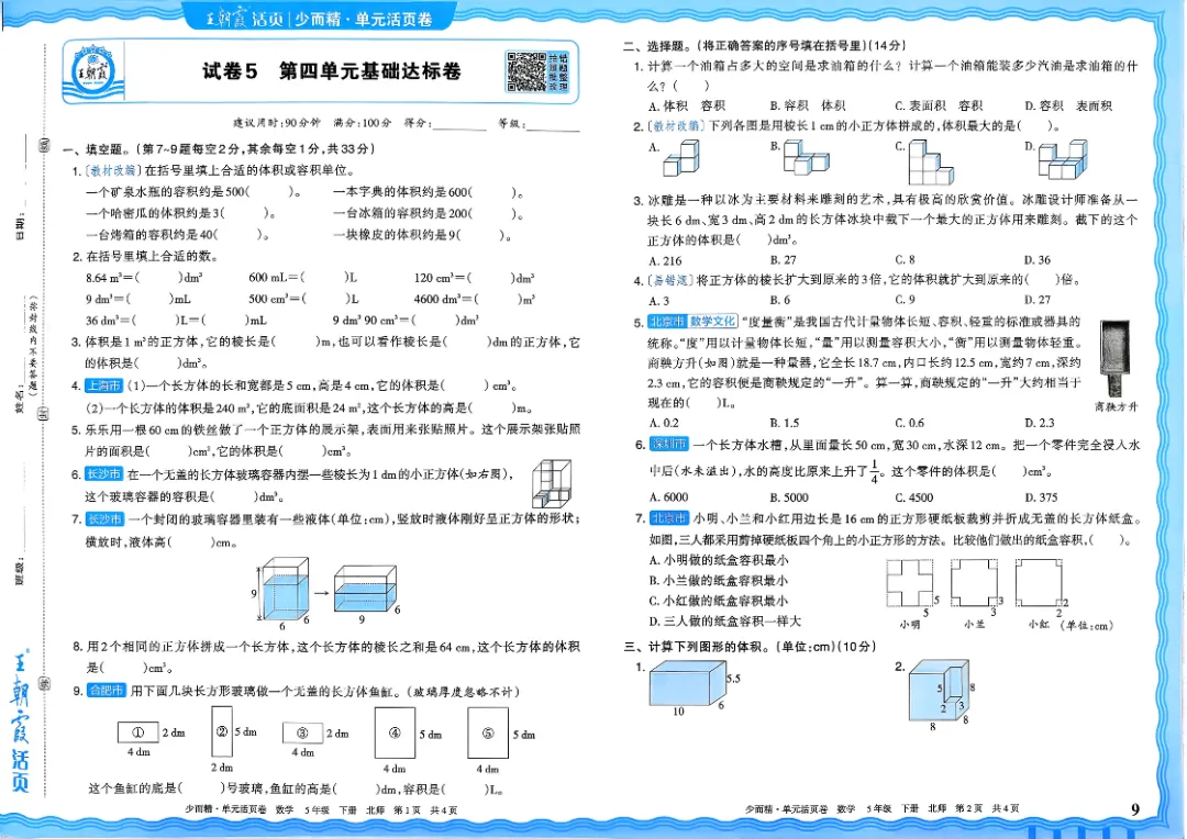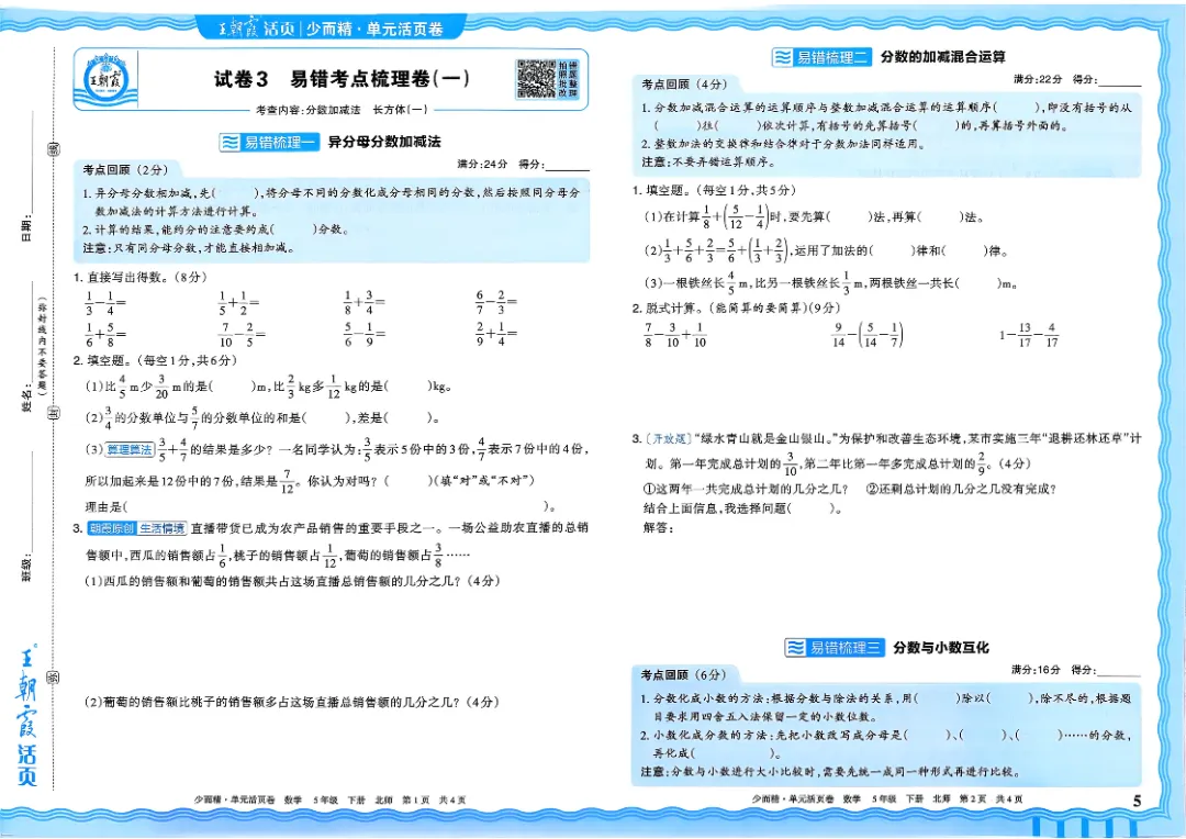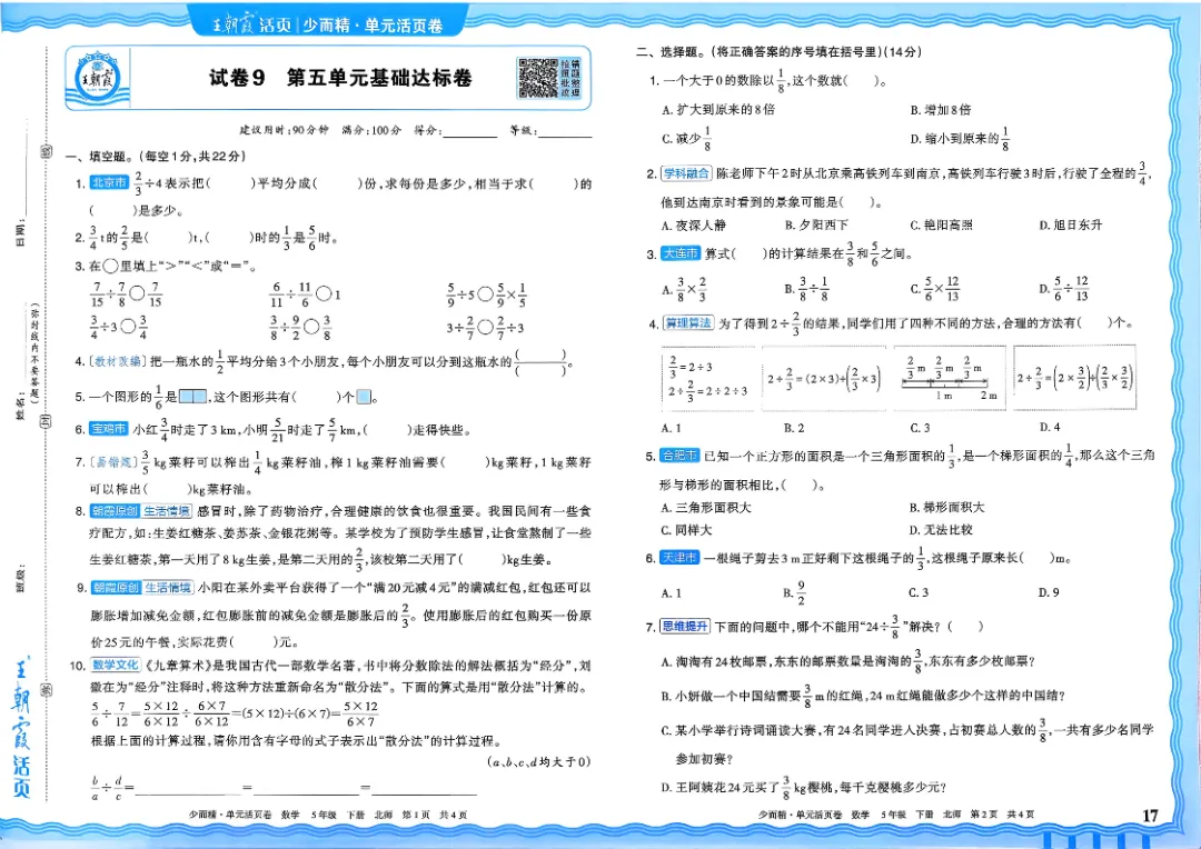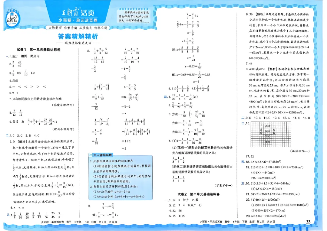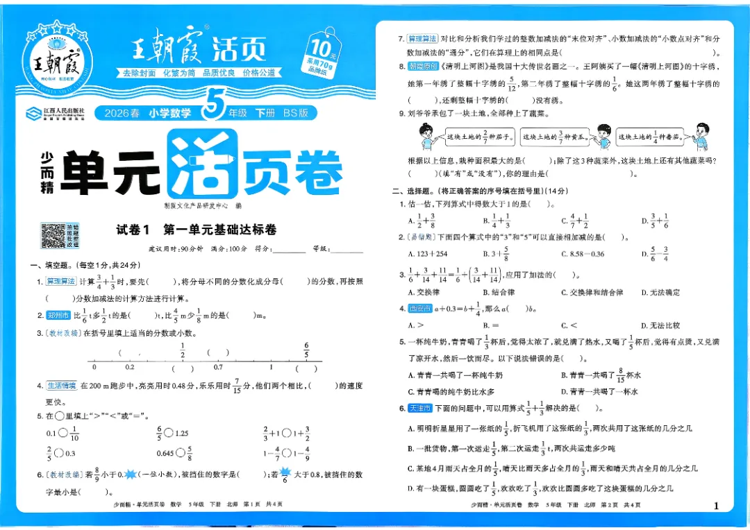 26春五下数学北师版王朝霞单元活页卷~完整高清电子版可打印