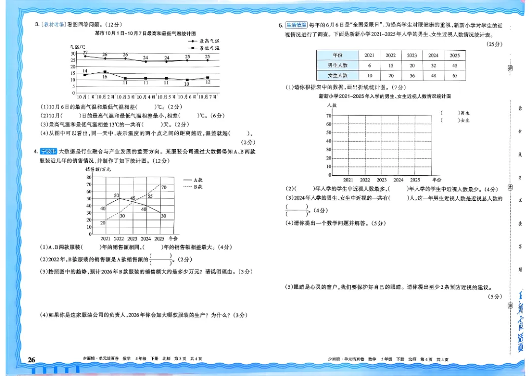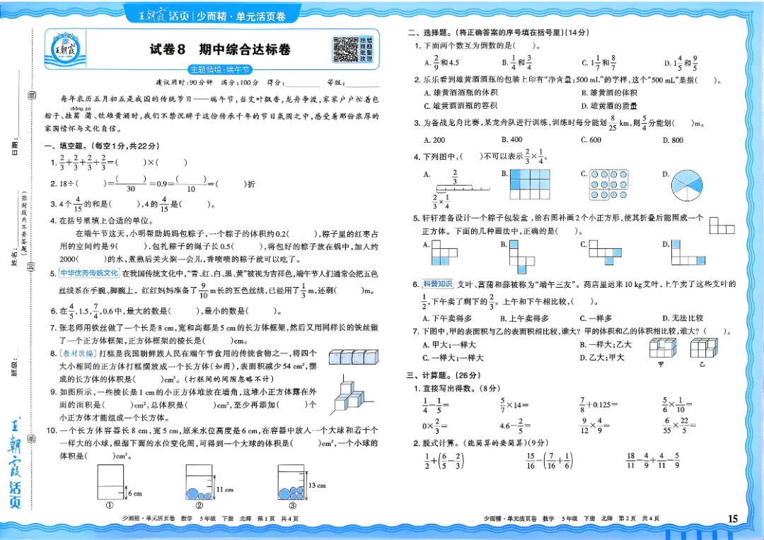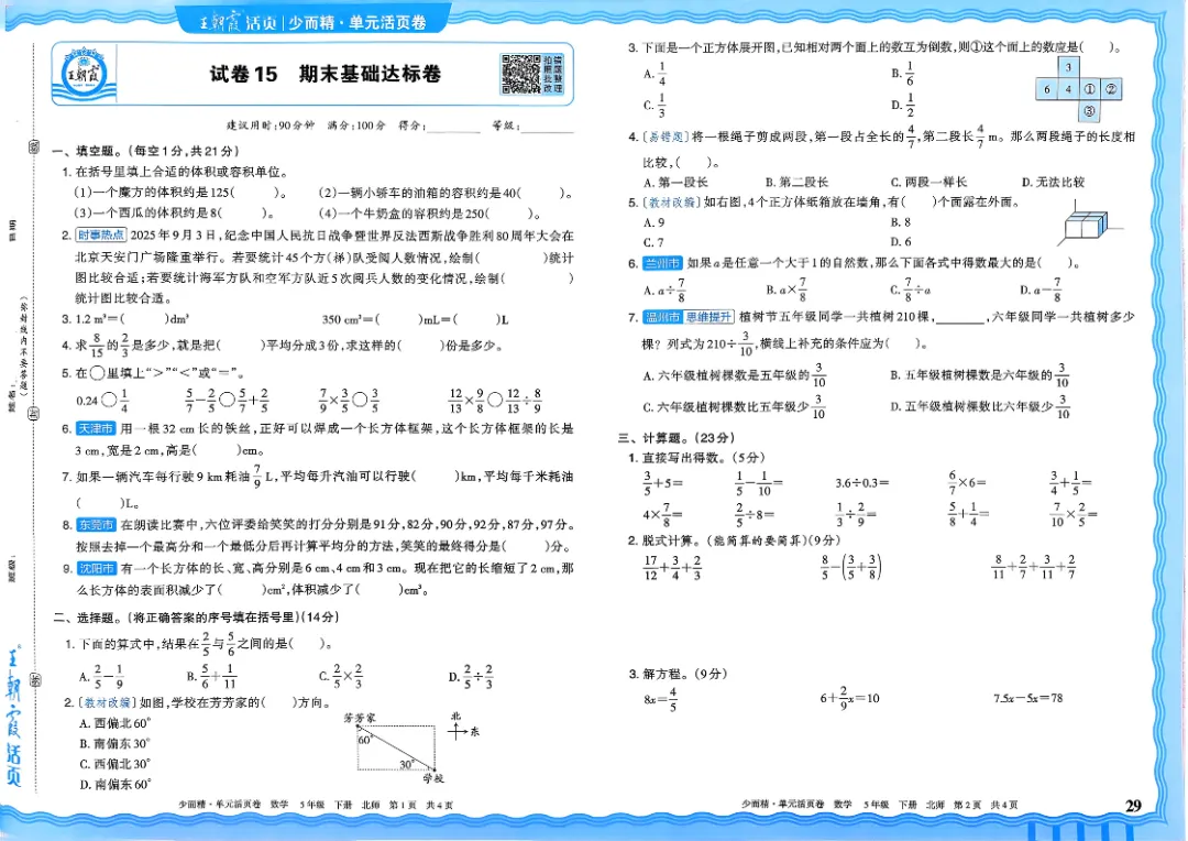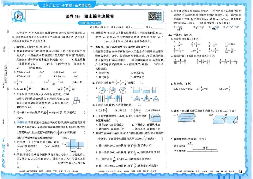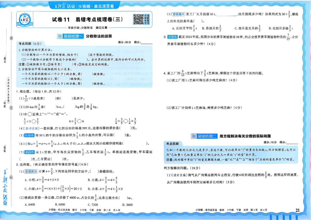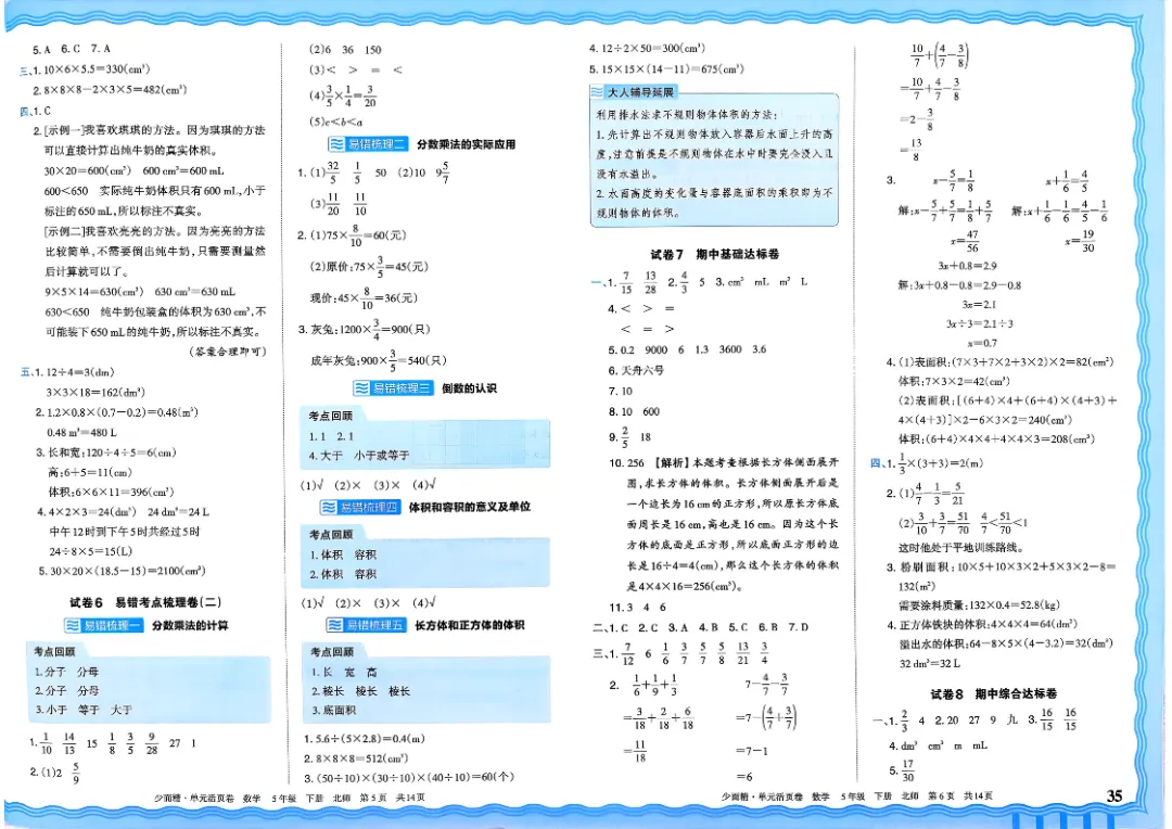 26春五下数学北师版王朝霞单元活页卷~完整高清电子版可打印