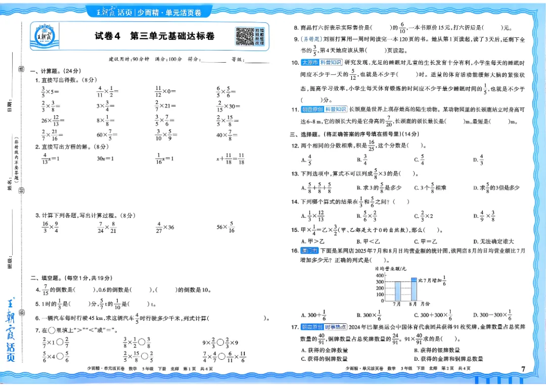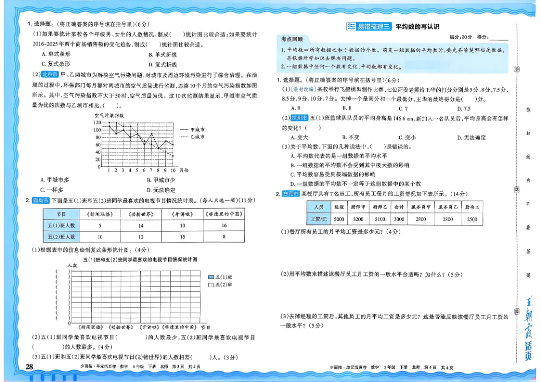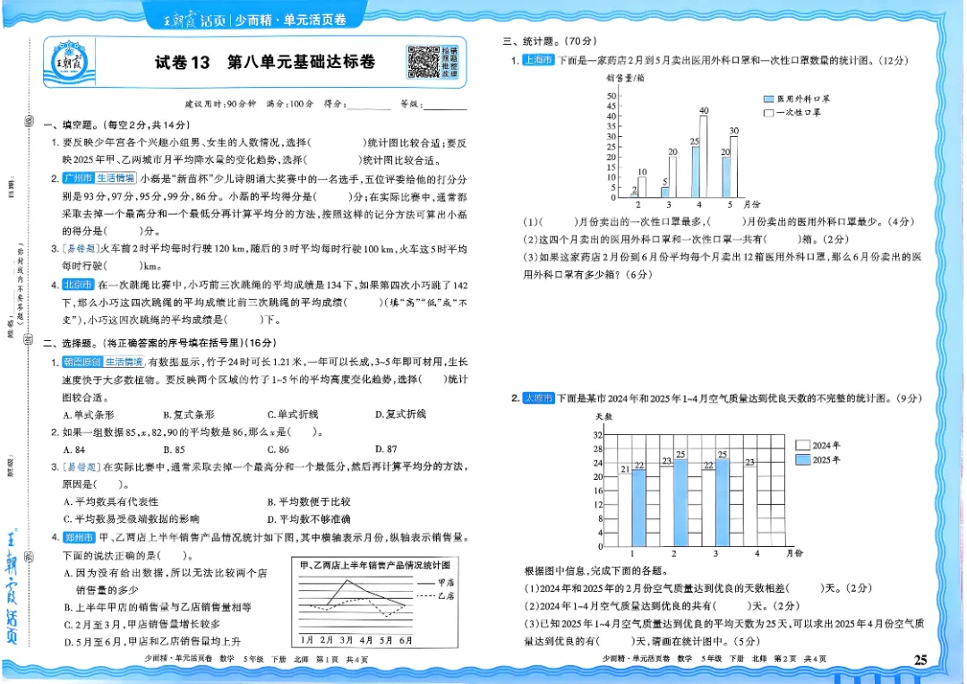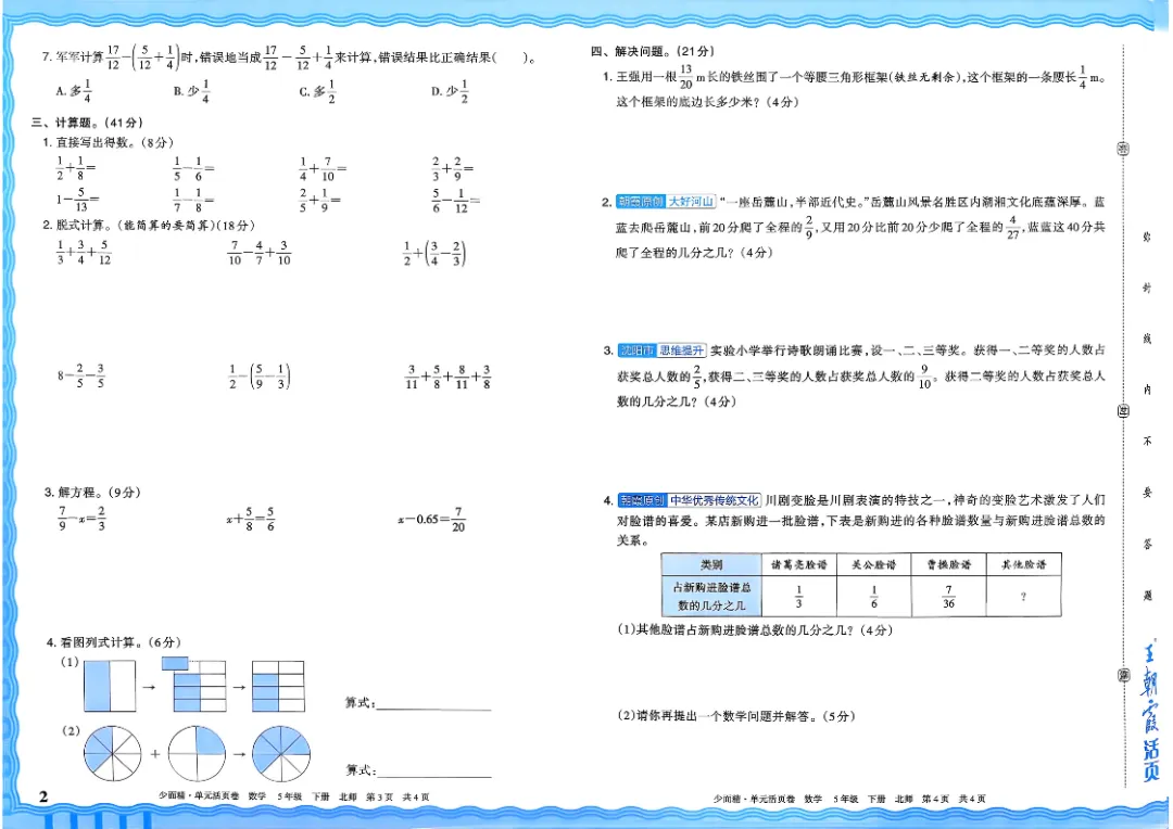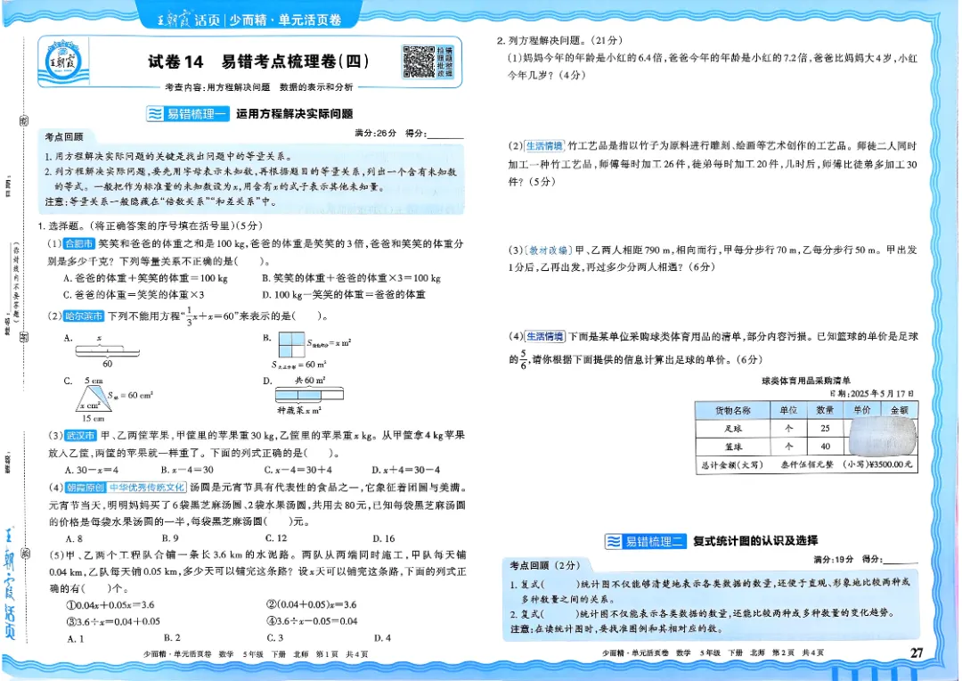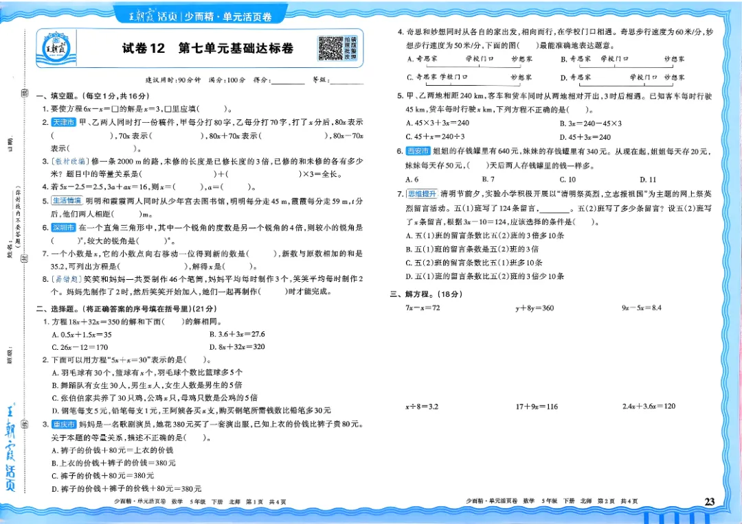 26春五下数学北师版王朝霞单元活页卷~完整高清电子版可打印