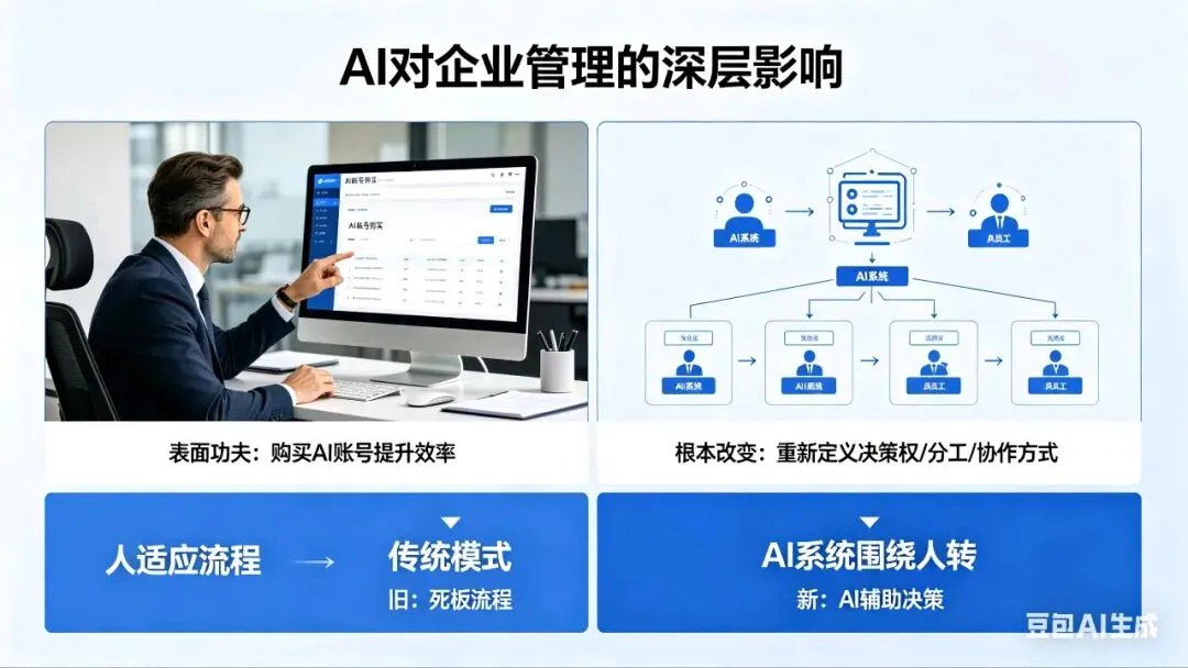 说实话,这只是表面功夫。AI真正改变的,是公司里谁说了算、谁干什么活、怎么配合这些根本问题。