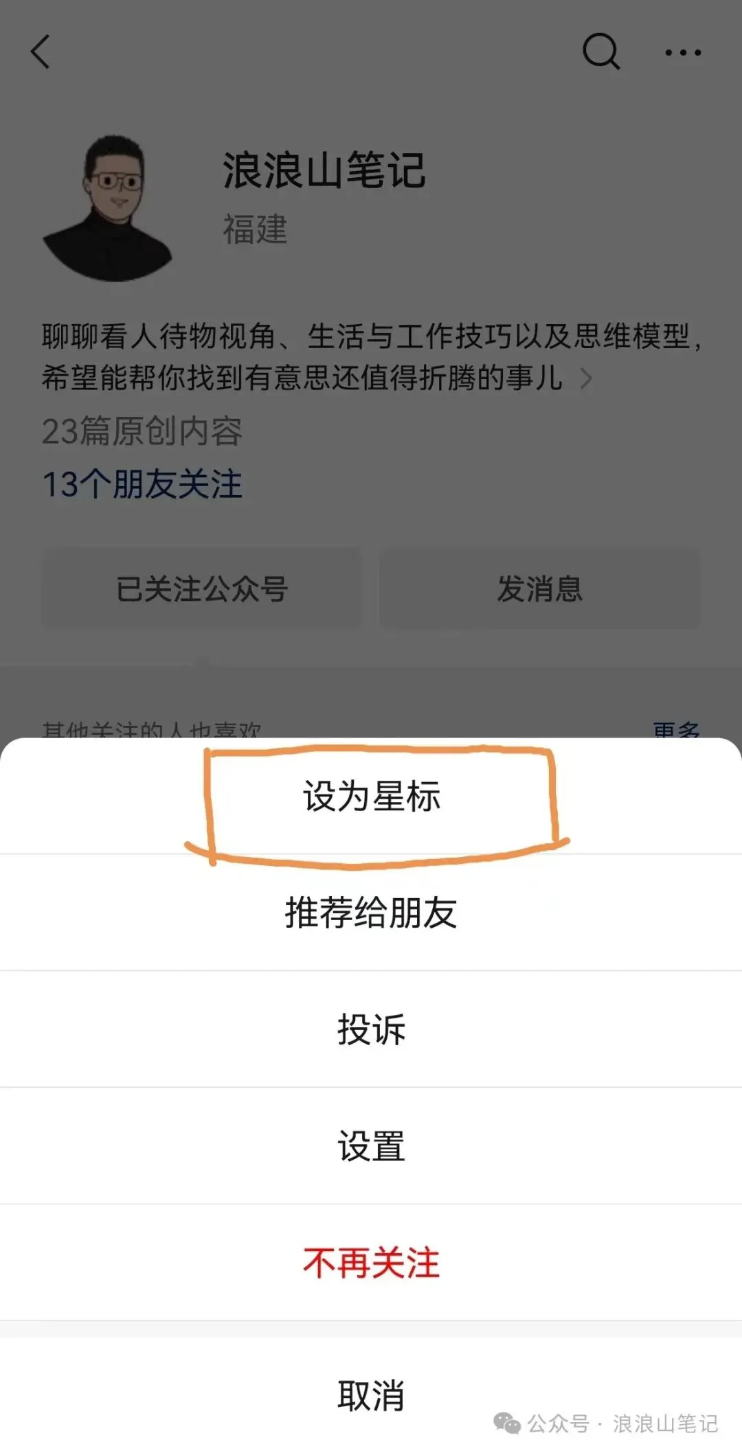 没有星标的公众号,会降低推送频率,