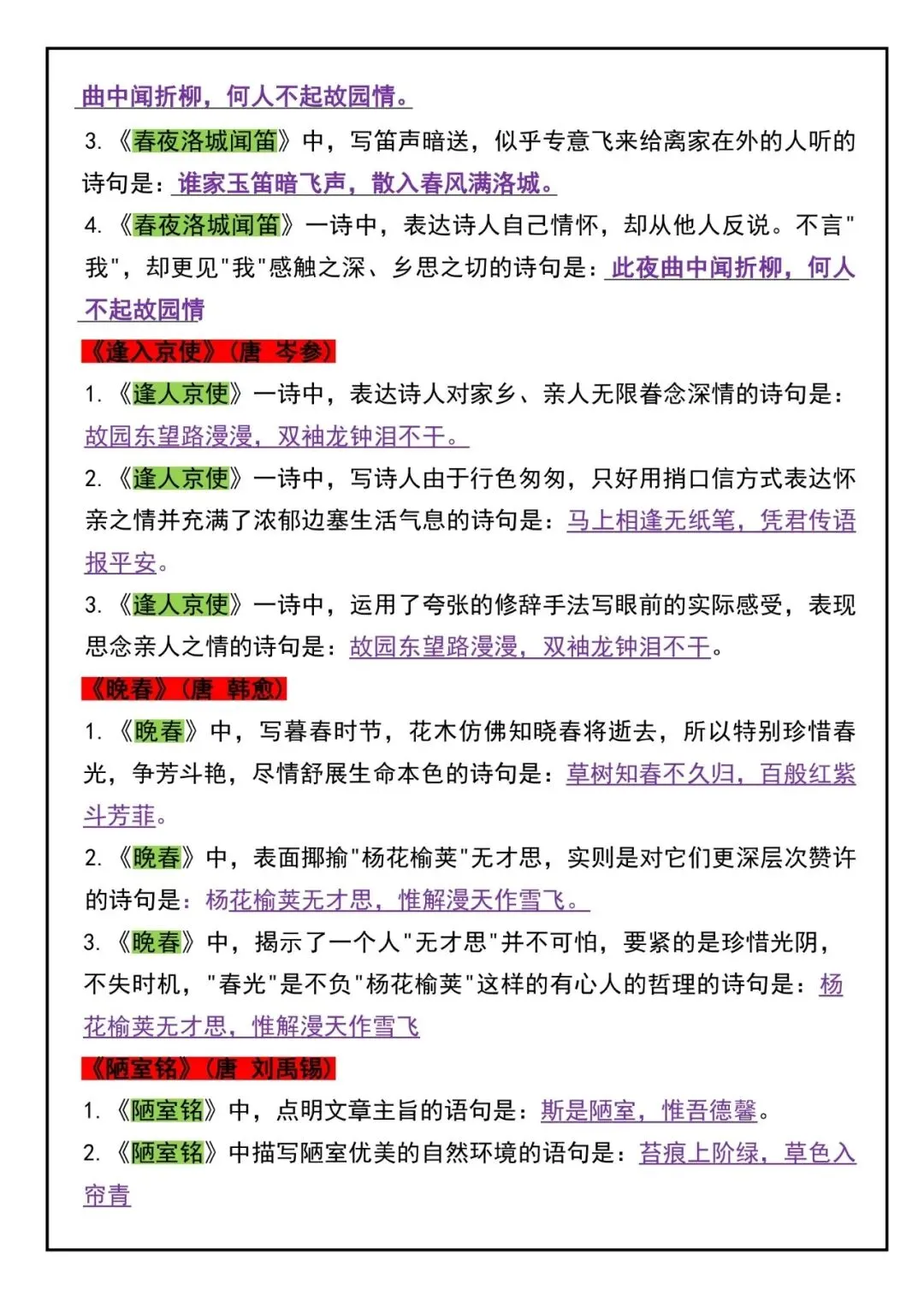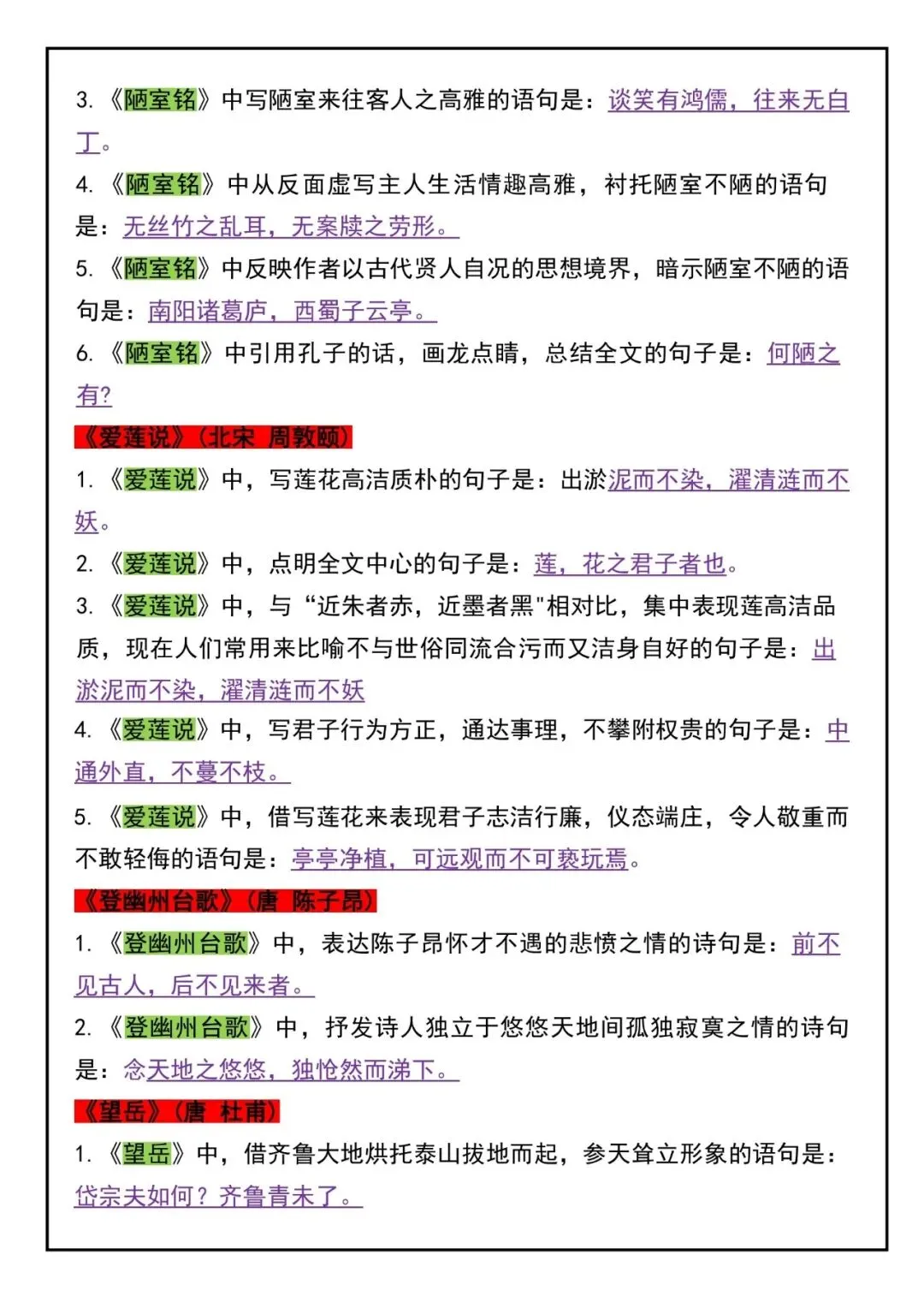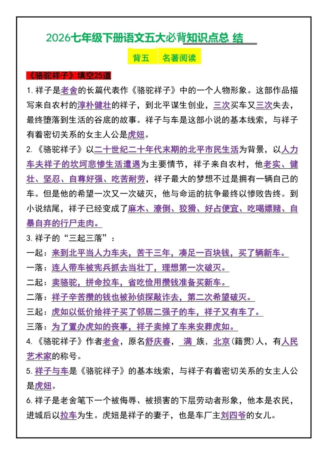 26新七年级下册语文五大必背知识点总结(电子版可打印)