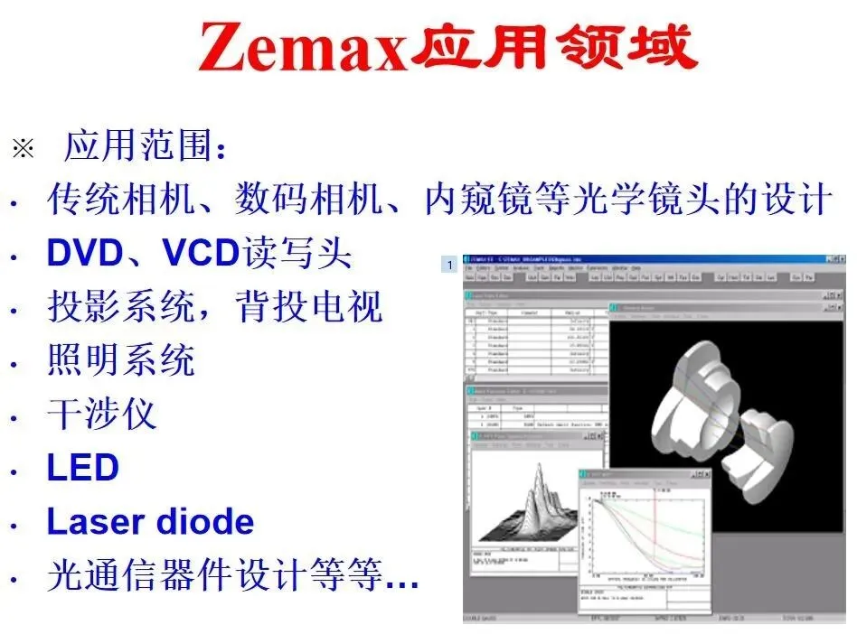 是用来决定光学系统中最佳的组件大小和外型,例如照相机、客户产品、通讯系统、军事 /外层空间应用以及科学仪器等。除此之外,它也常用于仿真光学系统性能以及发展出一套对光学设计、测试和制造的专门软件工具。