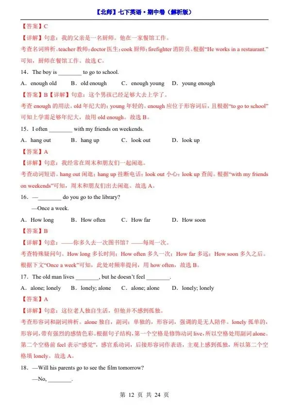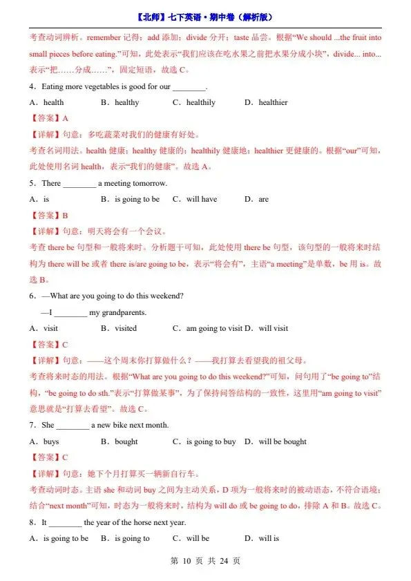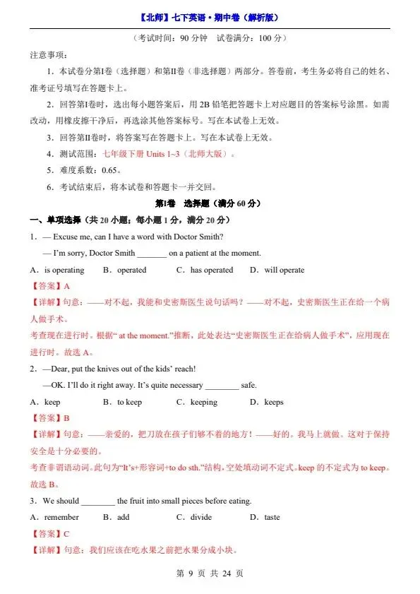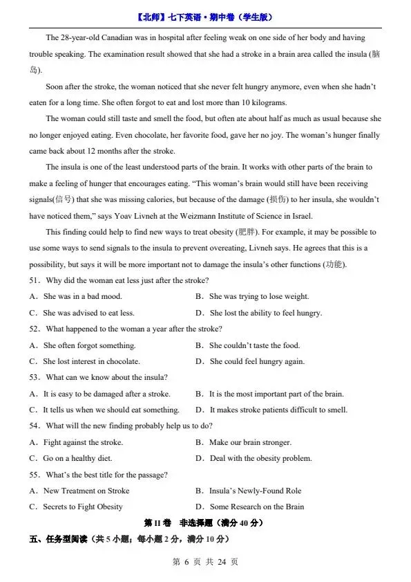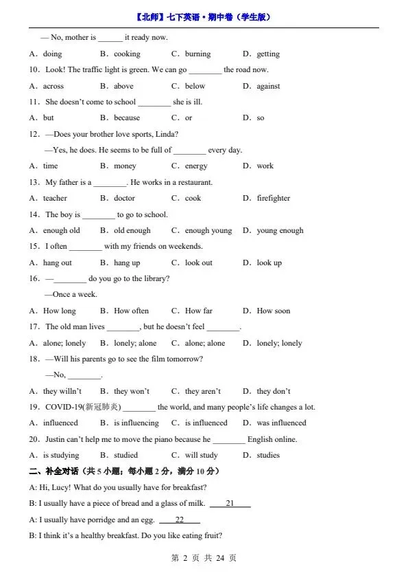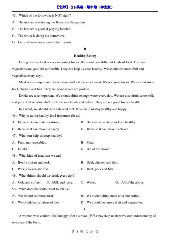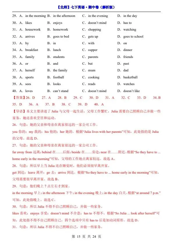 新26春七年级下册英语北师版期中试卷(答案+答题卡)完整电子版可打印!家长关注收藏,让孩子用高效的方法学透知识点,用优质的资源为学习赋能,在成长的赛道上稳步前行,轻松提分!