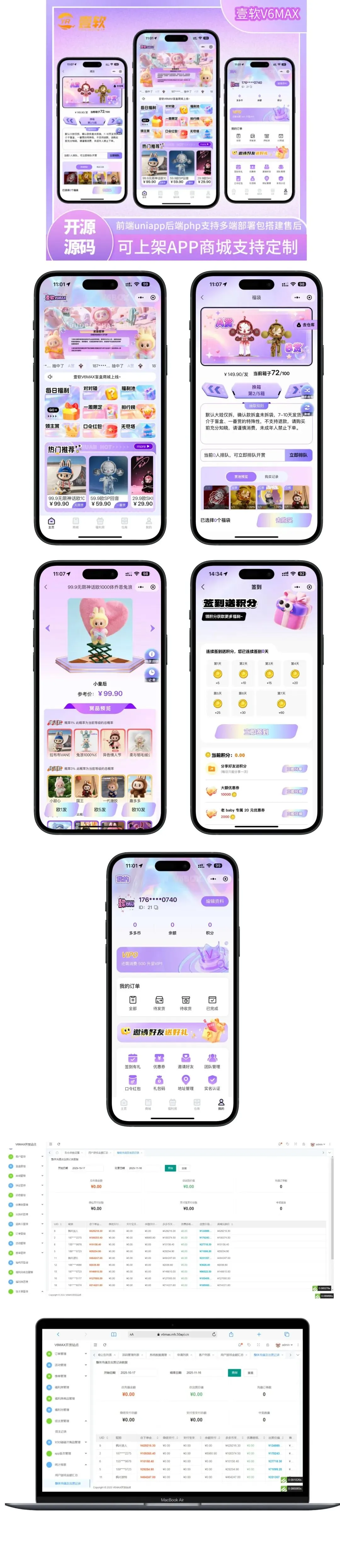 在2026年的数字消费语境下,传统的“静态货架”电商模式已逐渐失去对年轻一代的吸引力。Z世代消费者在购物时,愈发看重商品带来的情绪共鸣、探索未知的悬念感以及在社交圈层中的分享价值。潮玩盲盒经济凭借其自带的游戏化属性与社交货币特征,成功打造出一条高粘性、高转化、高复购的商业赛道。然而,要支撑起一个重交互、强体验的商业生态,一套底层逻辑严密、多端运行流畅且玩法前卫的数字化基建是不可或缺的。V6MAX系统凭借其跨端架构与深度的业务逻辑融合,正为潮玩零售提供一套全场景的数字化运营底座。
