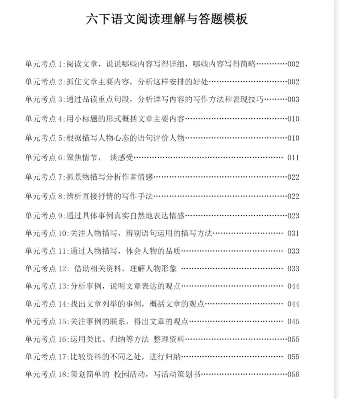 六下语文人教版 课内阅读理解常考题型+答题公式.pdf
