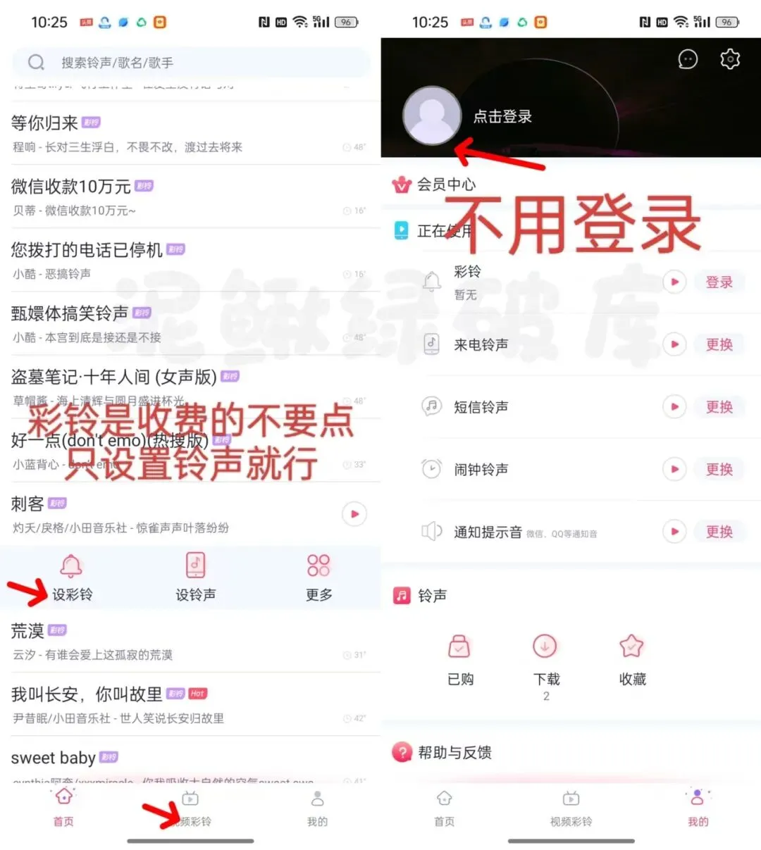 如果觉得之前发得铃声不够用,那就再发一个,已测试,直接下载使用不用登录,无广告,软件里边带的彩礼和彩铃视频不要去设置是收费的,只设置铃声就行。