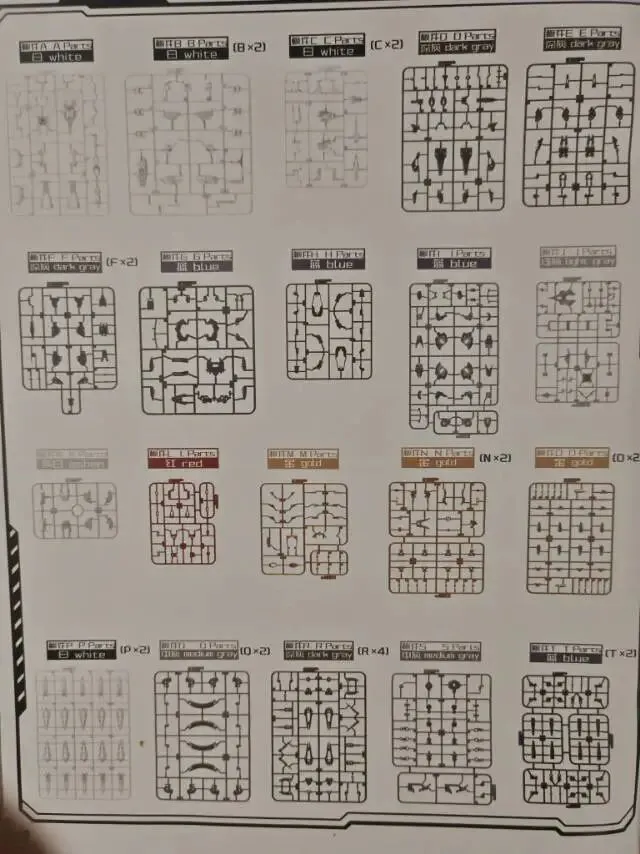 前期组合度极差:金色预涂装件为重灾区,大部分需要修件,对于新手不太友好。