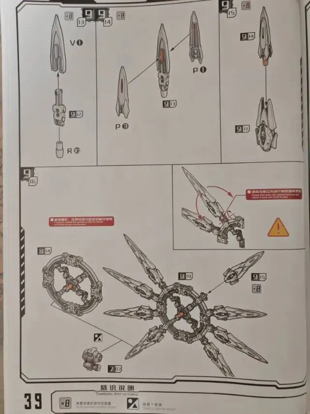 浮游刃拼装:共10枚(8枚装背包、2枚手持),每枚结构完全一致,需重复拼装10次;小零件细碎、卡扣多,易丢失;安装到背包圆环时,滑槽偏紧,调节角度费力,支撑力不足易下垂。