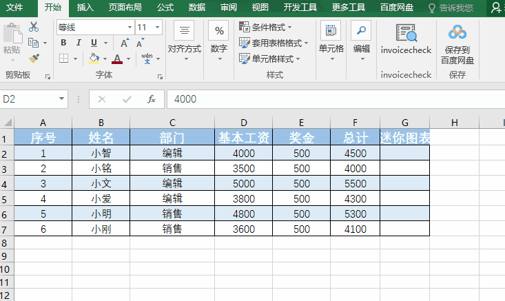2、迷你图表