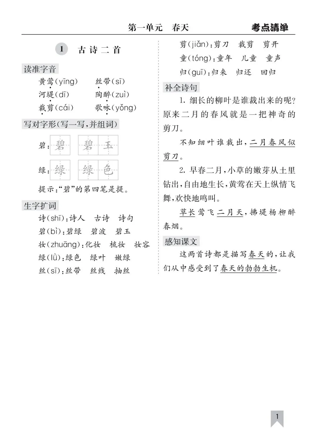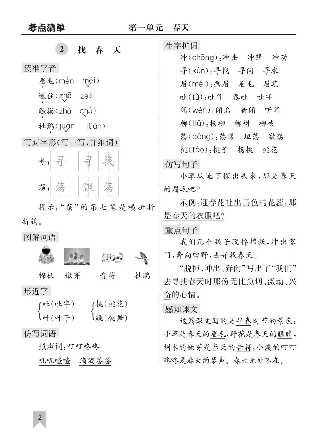 二年级语文全册核心考点总复习