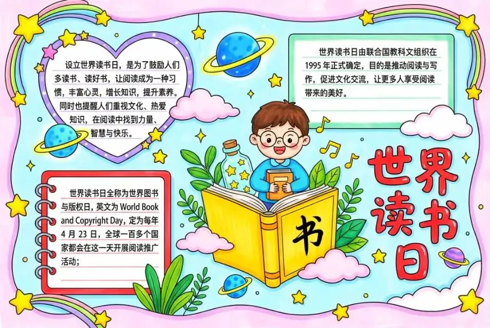 10套《世界读书日》手抄报模板【免费下载】 今天为大家带来10套世界读书日主题手抄报模板,小学及幼儿园均可使用,也可用于制作小报、黑板报。除彩色完整版,还附带黑白线稿,部分为word格式,支持编辑、修改、可直接打印 网盘打包下载 https://pan.quark.cn/s/138eac163853 以下是部分预览图 以上仅为部分预览图 手机点击左下角阅读原文 免费保存
