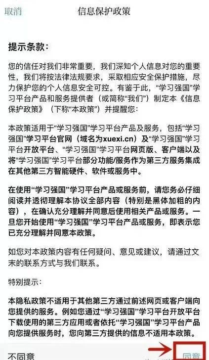 4、阅读完“信息保护政策”后,点击右下角“同意”