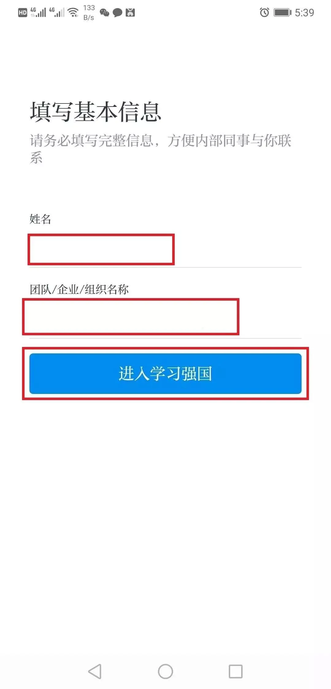 7、填写“真实姓名和单位”即可进入“学习强国”→完成注册。