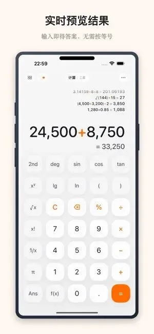 一款流畅计算器应用,支持表达式实时计算、自由编辑,覆盖多类单位换算、汇率查询功能,计算历史可检索复用。