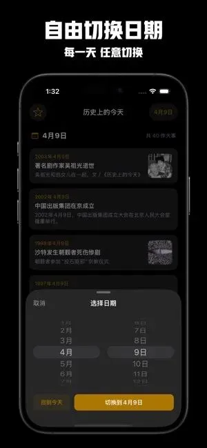 一款历史上的今天应用,收录中外政治、军事、文化、科技等多领域数千条历史大事件。可自动展示当日历史大事记,支持全年任意日期切换查询。