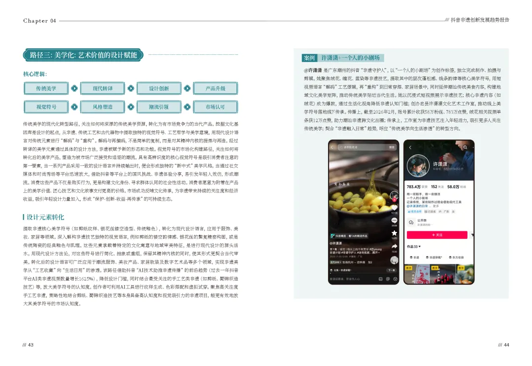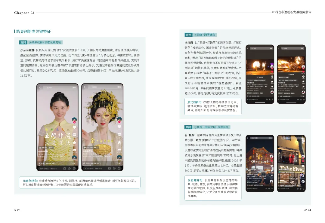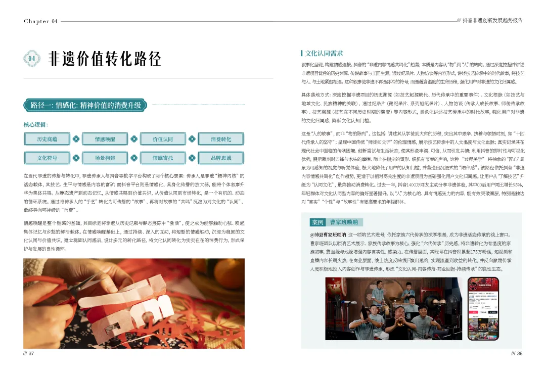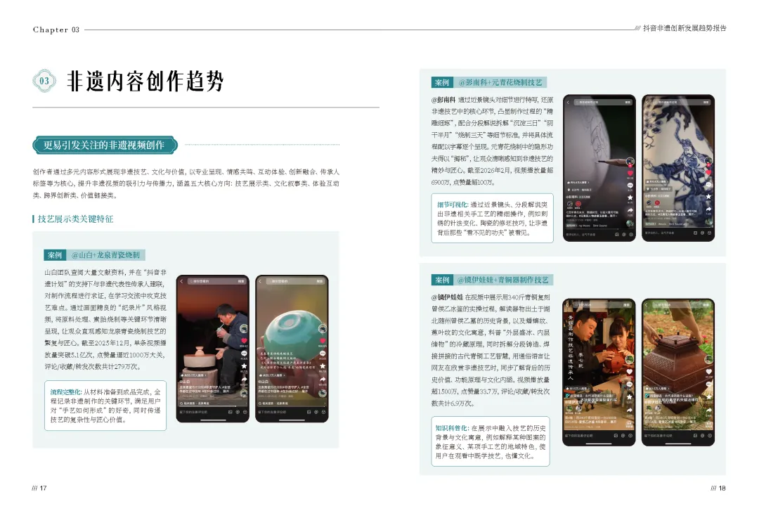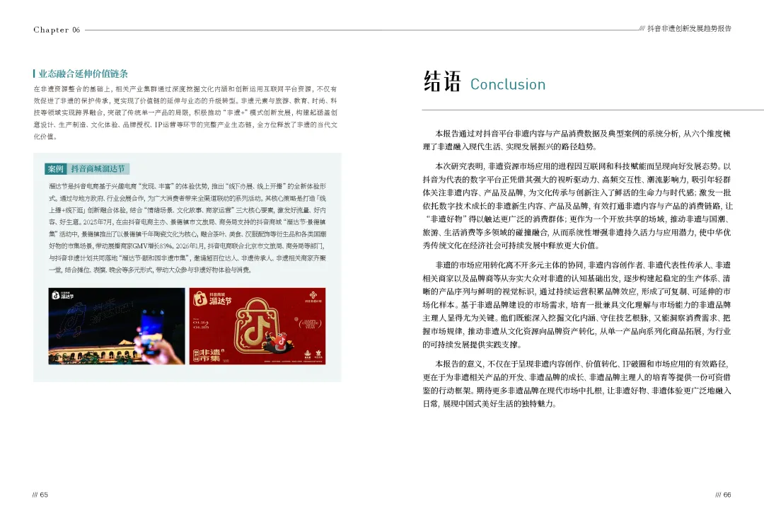 2026抖音非遗创新发展趋势报告(可下载) —— 核心内容◆ 部分展示 ◆ 资料下载 —— ▼ —— 核心内容◆ 部分展示 ◆ 资料下载—— ▼ 直接戳“阅读原文”下载 ▼ 往期热门推荐 清华大学《DeepSeek从入门到精通》 丨 清华大学《DeepSeek 如何赋能职场应用?》 丨 清华大学《普通人如何抓住DeepSeek红利》 丨 bilibili 十五大特色人群白皮书丨微信朋友圈高价值人群研究 丨 2024抖音电商年度报告 丨 新茶饮年度盘点 丨 2025消费趋势及增长策略洞察 丨 2024-2025节日营销趋势 丨 2025年视频号中老年用户消费洞察 丨 5个值得收藏的年度演讲PPT 丨 社交趋势 丨 抖音电商年度增长报告 丨 TikTok Shop 2024年度数据报告 丨 2024抖音热点年度数据 丨 周鸿祎:2025年赚钱7大风口 丨 小红书5900万质享人群白皮书 丨 疗愈经济 丨 2024电商消费趋势年度报告 丨 2024小红书「十大生活方式」洞察 丨 2025私域人才需求与薪酬 丨 年轻人10大兴趣社交 丨 消费者展望 丨 情绪经济 丨 微信内容种草 丨 大家电 丨 2024最全双11数据报告 丨 酒水 丨 汽车 丨 微短剧 丨 《中国统计年鉴2024》 丨 万亿银发经济 丨 小家电 丨 2024小红书趋势及品牌玩法拆解 丨 青年消费 丨 2023-2024年小红书全行业月报(325份)