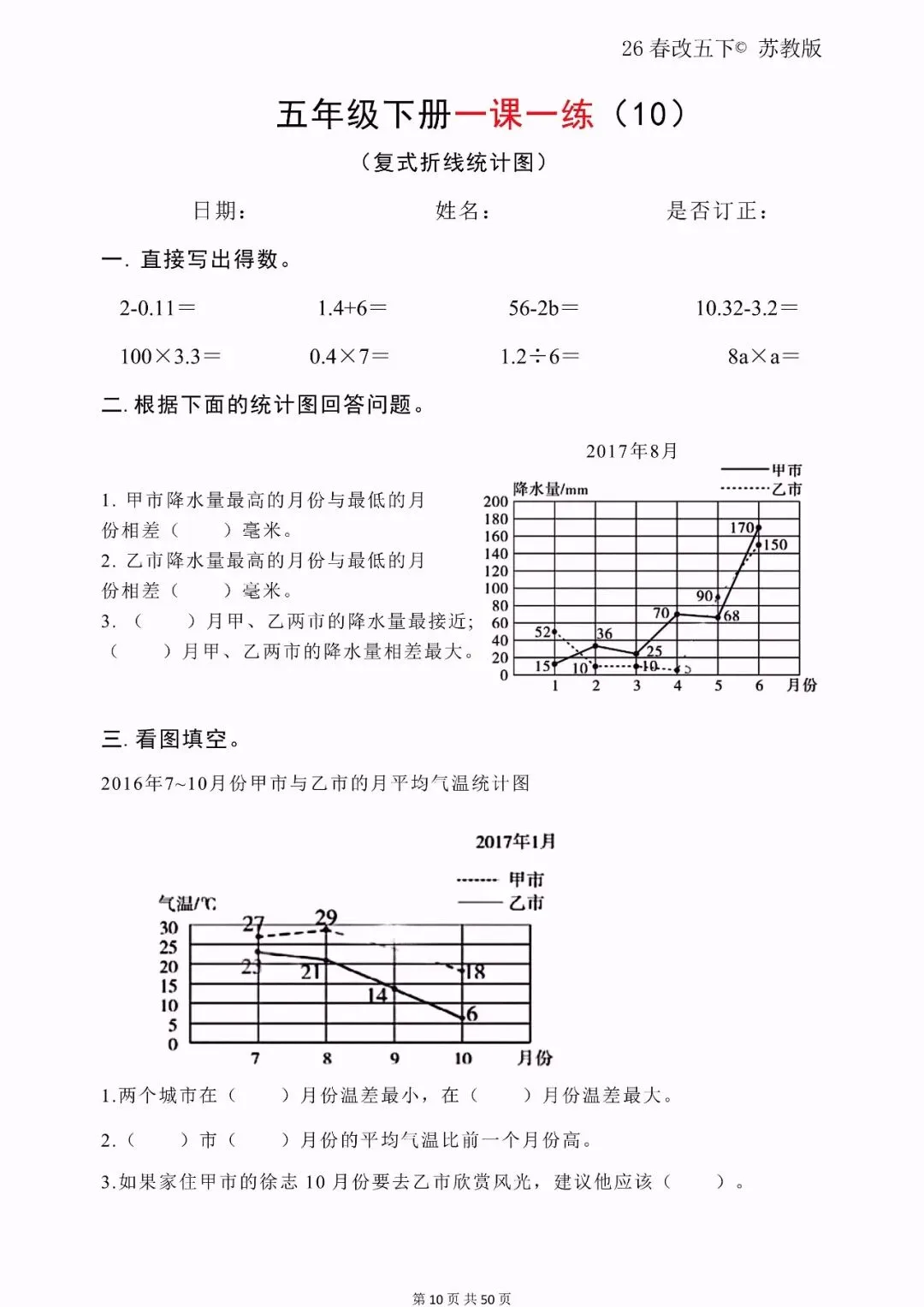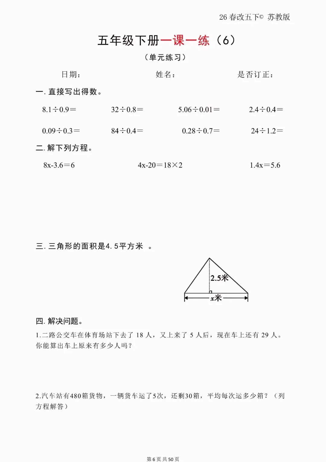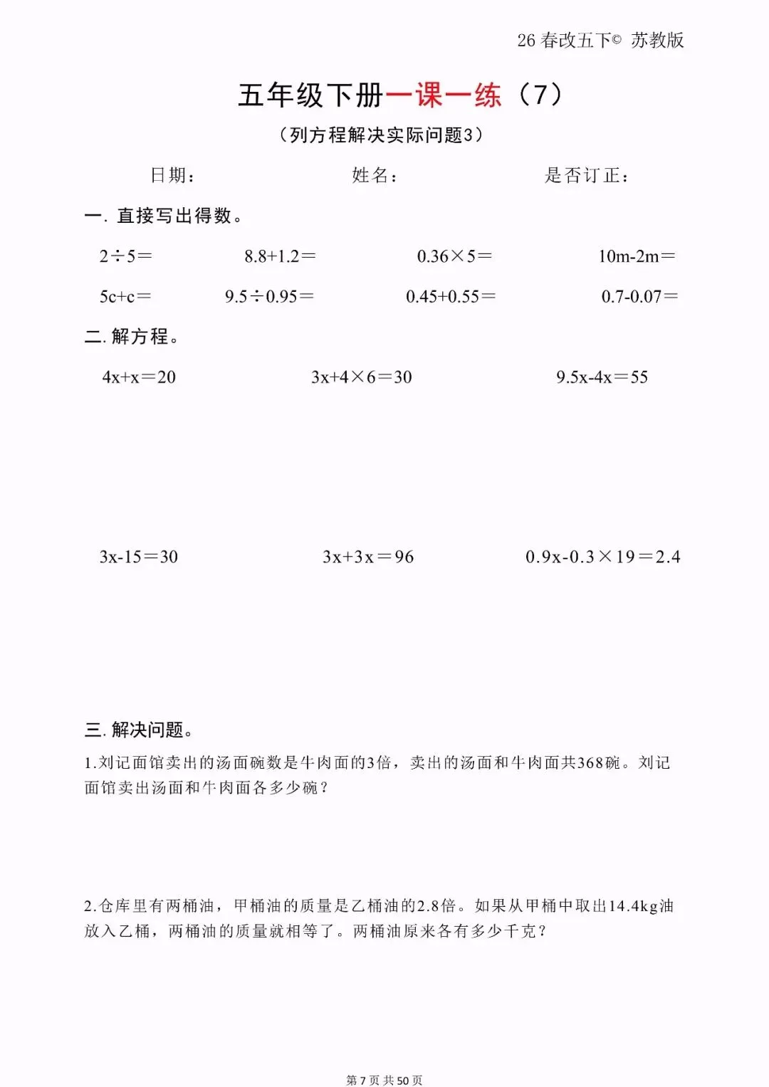 26新五年级下册数学苏教版一课一练,高清电子版可打印 大家好,我是多雅妈妈,今天分享的是26新五年级下册数学苏教版一课一练,有答案电子版可打印 (温馨提示;因篇幅有限,仅展示部分内容。 (文末有完整版电子版领取方式) 完整电子版: ①:点一点右下角的“赞”和“在看”,感谢! ②:在公众号对话框中回复:46 (不是在“留言”中发数字)
