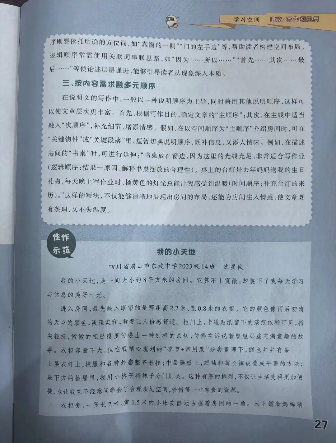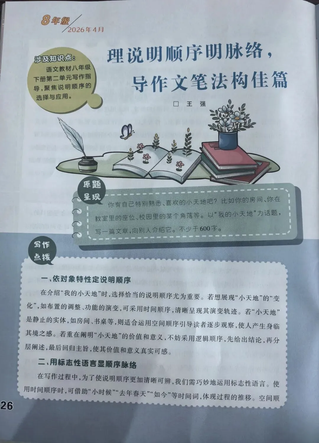 教研教改|八年级下册第二单元“说明顺序”写作思路点拨【附范文《我的小天地》】