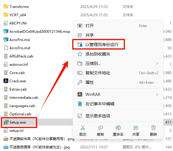 2.打开刚刚解压的文件夹, 鼠标右键点击“Setup.exe”选择“以管理员身份运行”