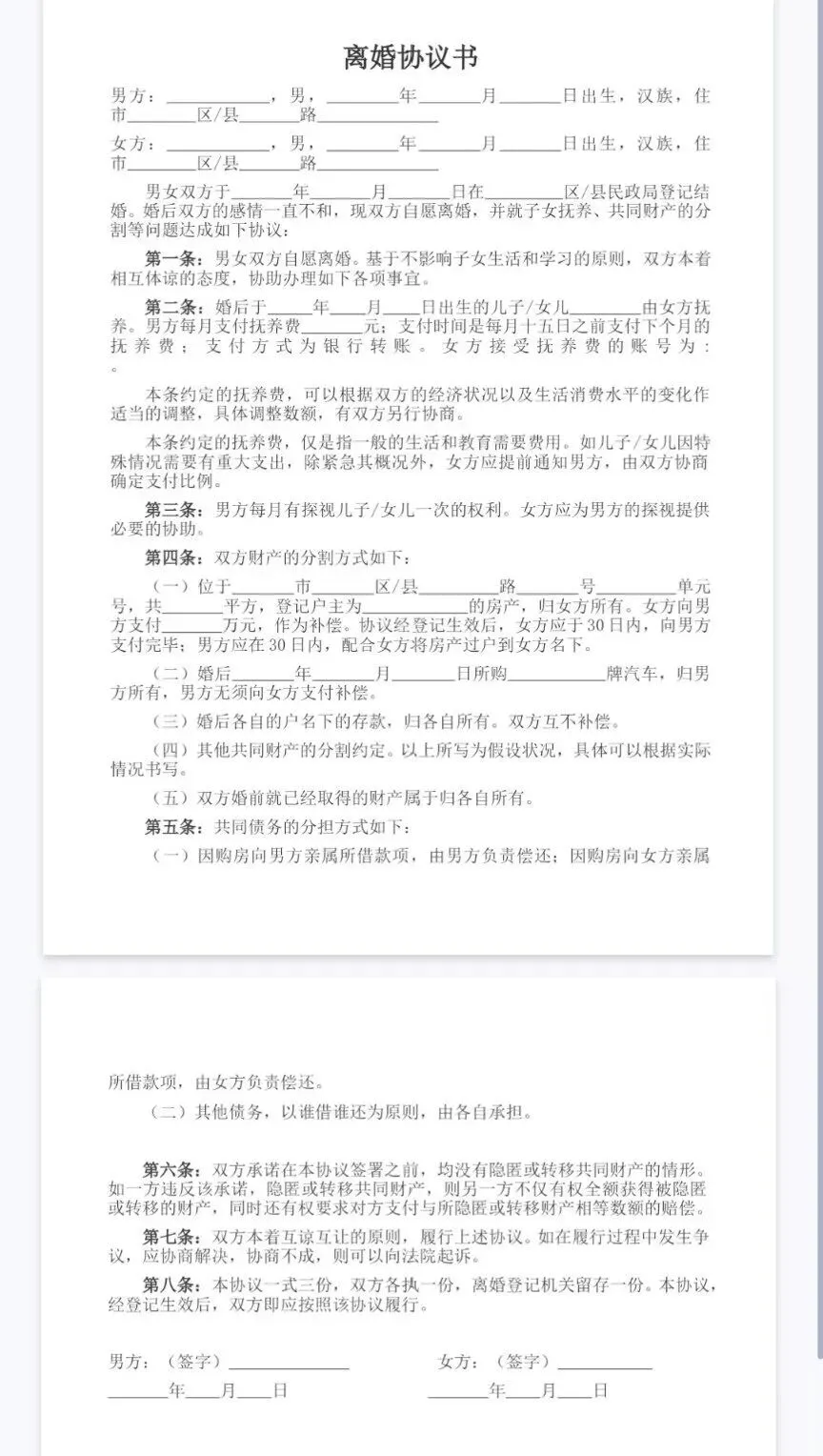 免费分享离婚协议书电子版!64套模板,覆盖99%家庭情况