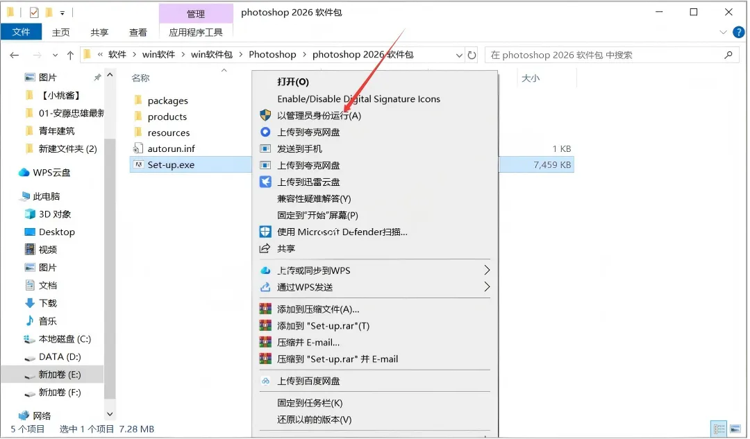 第二步:右击,以管理员身份运行”Set-up.exe软件包”。